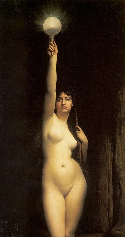 팔등신의 미녀를 그려 놓은 멋진 포즈이다. 왼쪽은 그의 대표작인 <진리(La Verite)>이다. 그는 이 작품을 계기로 레지옹 도뇌르(Légion d'honneur)를 수상하였다. 오른쪽은 <판도라>이다. 뚜껑을 여는 순가 세상의 모든 비밀은 사라지고 우리의 미래까지도 지금 당장 알 수 있는 무서운 상자를 들고 있는 여신이다. 벗은 몸이 진리일까 아니면 빛나는 거울이 진리일까? 판도라 상자의 내용물이 궁금하기도 하겠지만 당장 이 아름다운 여신의 몸매가 더 궁금한 것은 남자들의 끝없는 욕망 탓일까?
