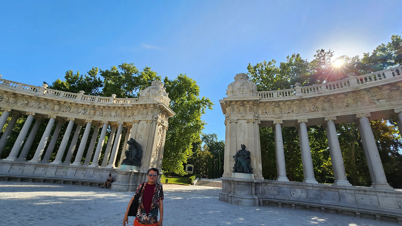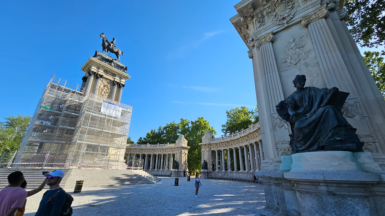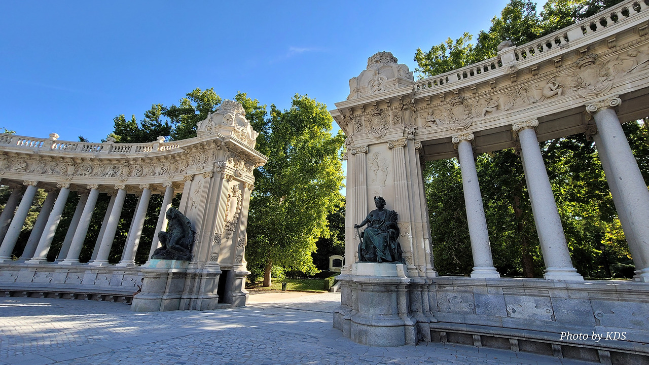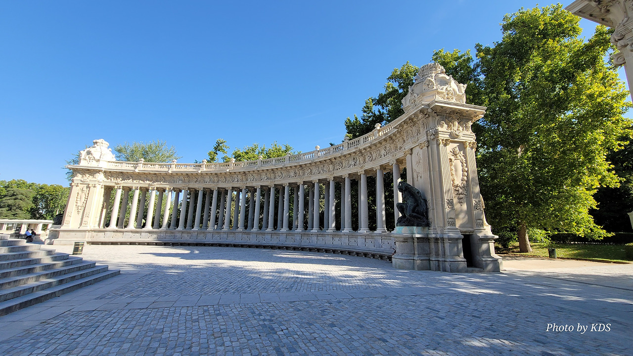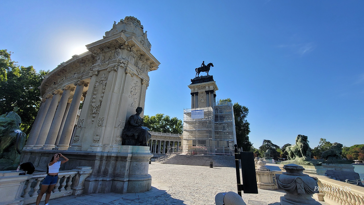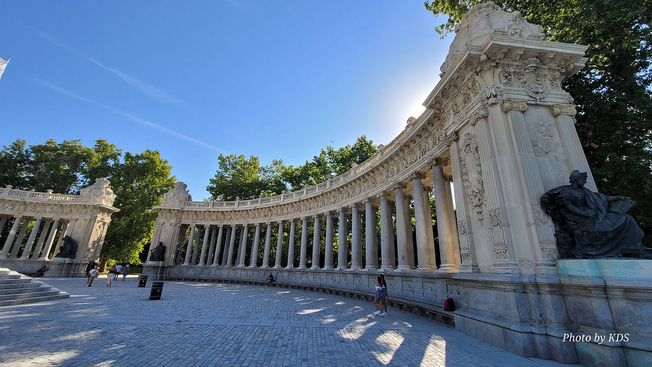 알폰소 12세 기념비는 스페인 조국 기념비인데, 건축가 호세 그라세스 리에라(José Grases Riera)가 디자인한 엄청난 크기의 조각 집합체이다. 집합체의 높이는 30m, 길이는 86m, 너비는 58m이며, Mariano Benlliure, Josep Clarà 및 Mateo Inurria를 포함하여 20명 이상의 조각가가 창작에 참여했다. 대중의 기부금으로 자금을 조달한 이 기념비는 1922년 7월 22일에 개관되었다. 기념물의 중앙에는 Mariano Benlliure가 청동으로 만든 높이 20m의 알폰소 12세 왕의 승마상이 있다. 바닥에는 세 개의 청동 부조가 있고, 중앙 기념물에서 13개의 계단을 따라가면 조각가 Agapito Vallmitjana(끝에 두 개)와 Pedro Estany(중앙에 두 개)가 조각한 네 마리의 돌사자가 있는 연못으로 이어 진다. 받침대 아래에는 청동으로 된 4명의 인어가 있는데, Antonio Parera, Rafael Atché, Antonio Coll 및 Antonio Alsina의 작품이다.