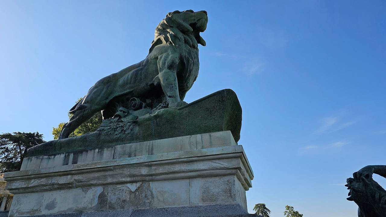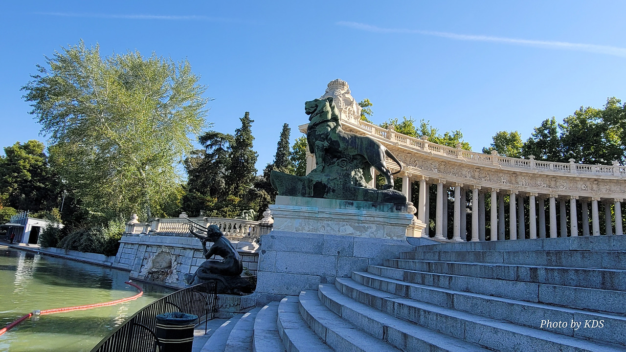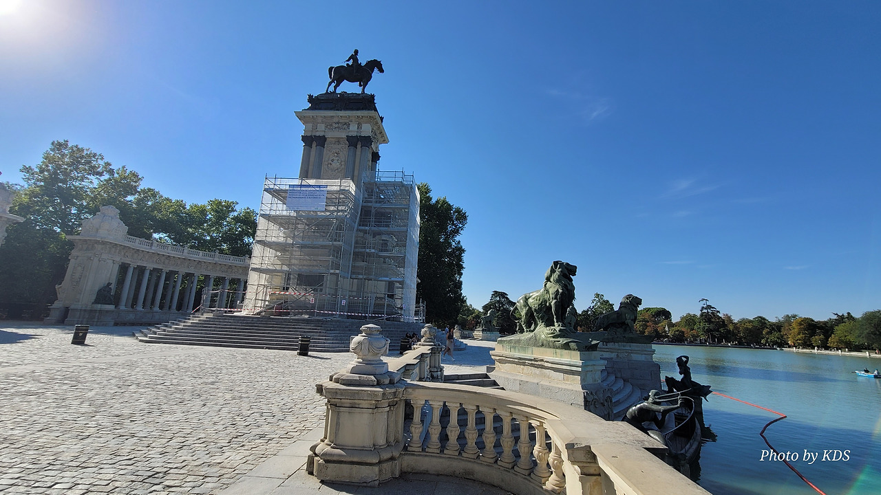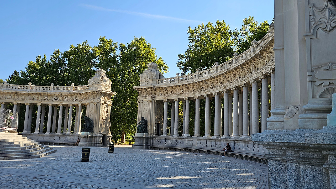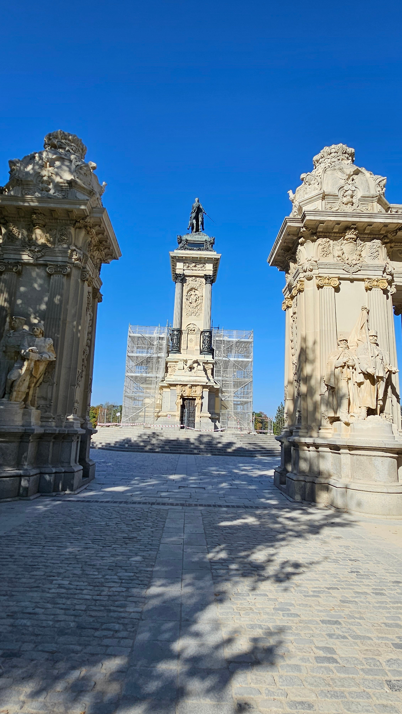 알폰소 12세 기념비는 스페인 조국 기념비인데, 건축가 호세 그라세스 리에라(José Grases Riera)가 디자인한 엄청난 크기의 조각 집합체이다. 집합체의 높이는 30m, 길이는 86m, 너비는 58m이며, Mariano Benlliure, Josep Clarà 및 Mateo Inurria를 포함하여 20명 이상의 조각가가 창작에 참여했다. 대중의 기부금으로 자금을 조달한 이 기념비는 1922년 7월 22일에 개관되었다. 기념물의 중앙에는 Mariano Benlliure가 청동으로 만든 높이 20m의 알폰소 12세 왕의 승마상이 있다. 바닥에는 세 개의 청동 부조가 있고, 중앙 기념물에서 13개의 계단을 따라가면 조각가 Agapito Vallmitjana(끝에 두 개)와 Pedro Estany(중앙에 두 개)가 조각한 네 마리의 돌사자가 있는 연못으로 이어 진다. 받침대 아래에는 청동으로 된 4명의 인어가 있는데, Antonio Parera, Rafael Atché, Antonio Coll 및 Antonio Alsina의 작품이다.