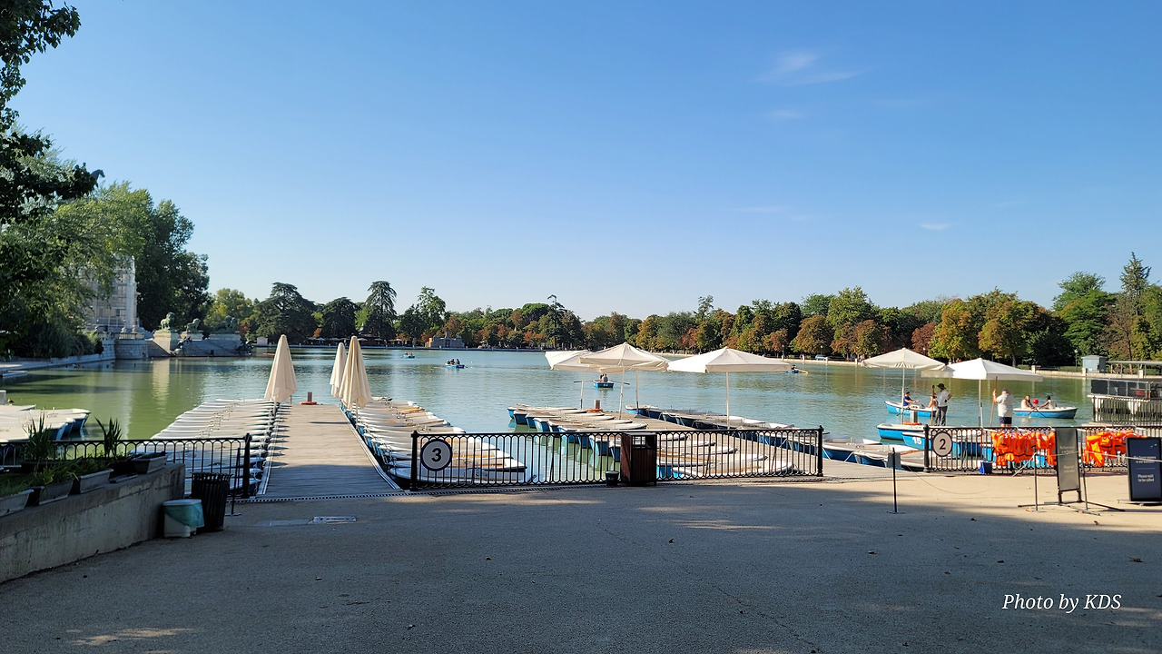 레티로 연못(Retiro Pond)으로 널리 알려진 에스탄크 그란데 델 부엔 레티로(Estanque Grande del Buen Retiro)는 레티로 공원(Retiro Park)에 위치한 인공 호수이다. 이곳은 필리프 4세(1605-1665) 통치기간에 등장한 스페인 왕실의 소유였던 부엔 레티로(Buen Retiro)의 가장 높은 경관 요소 중 하나로 17세기 전반에 만들어졌다. 호수의 길이는 약 250m이고 폭은 약 125m이며, 면적은 37,240m², 수량은 55,150㎥로 레크리에이션 항해와 조정 및 카누 대회 개최가 가능한 부두를 갖추고 있다. 호수와 면하여 알폰소 12세 기념비와 이집트 분수가 있다. 호수에는 레저용 보트를 현재도 운행하고 있다. 카누와 조정을 위한 수많은 공식 선수권 대회가 이곳에서 개최되었으며, 1994년부터 2004년까지 매년 개최된 겨울 수영 횡단 대회와 같은 자선 행사도 개최되었다. 이곳은 또한 다양한 수상 스포츠 클럽의 본부 역할을 했다.