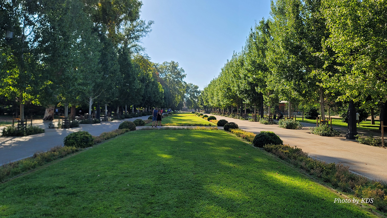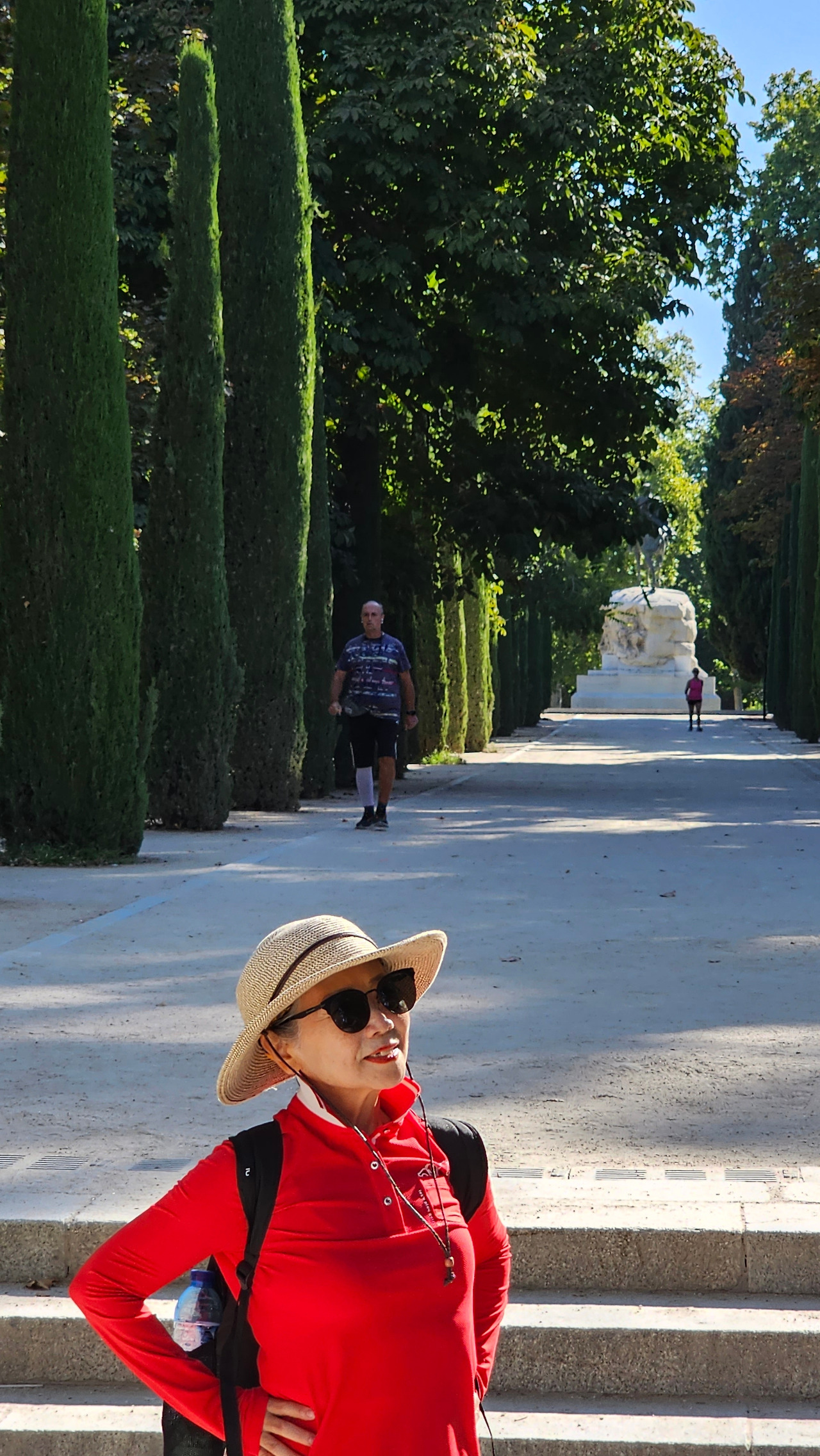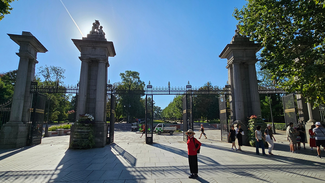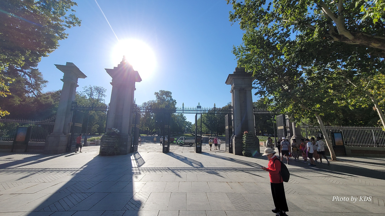 프라도 미술관 근처에 아주 큰 엘 레티로 정원(Parque El Retiro)가 있어서 방문해 보니 대단했다. 이 공원은 125헥타르에 15,000그루 이상의 나무와 호수가 있어서 마드리드 중심부에 있는 푸른 안식처로 허파의 구실은 한다. 워낙커서 다양한 세부 정원으로 구분할 수 있다. Vivaces 정원, Cecilio Rodríguez 정원(안달루시아 풍의 고전주의 정원), 건축가 Herrero Palacios 정원, 재건된 Montaña de los Gatos 정원, Rosaleda(장미 정원) 등이 있다. 레티로 호수, 크리스탈 궁전, 타락한 천사의 분수, 벨라스케스 궁전도 있다. 특이하게 마드리드에서 가장 오래된 나무인 아우에우에테(Ahuehuete)가 있는 프렌치 파테르(Parterre French)는 수령이 약 400년이라고 하는데, 실제 더 오래된 나무는 푸에르타 델 앙헬 카이도(Puerta del Ángel Caído) 출입구 근처 초원 중 하나에 심어져 있는 올리브나무인데 1396년에 심은 거라니 우리나라 조선의 역사랑 비슷하다. 공원이 워낙 크다 보니 출입구가 17개(주요한 문 : 펠리페 4세 문, 독립문, 스페인 문, 마드리드 문, 에르나니 문 등)가 있다. 2021년 7월 25일부터 파세오 델 프라도(Paseo del Prado)와 함께 유네스코 세계문화유산 으로 지정되었다.