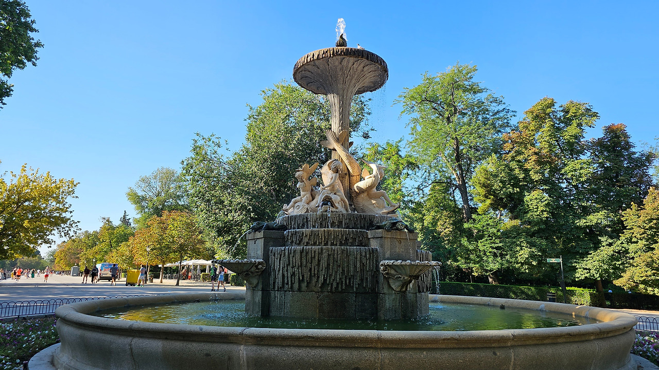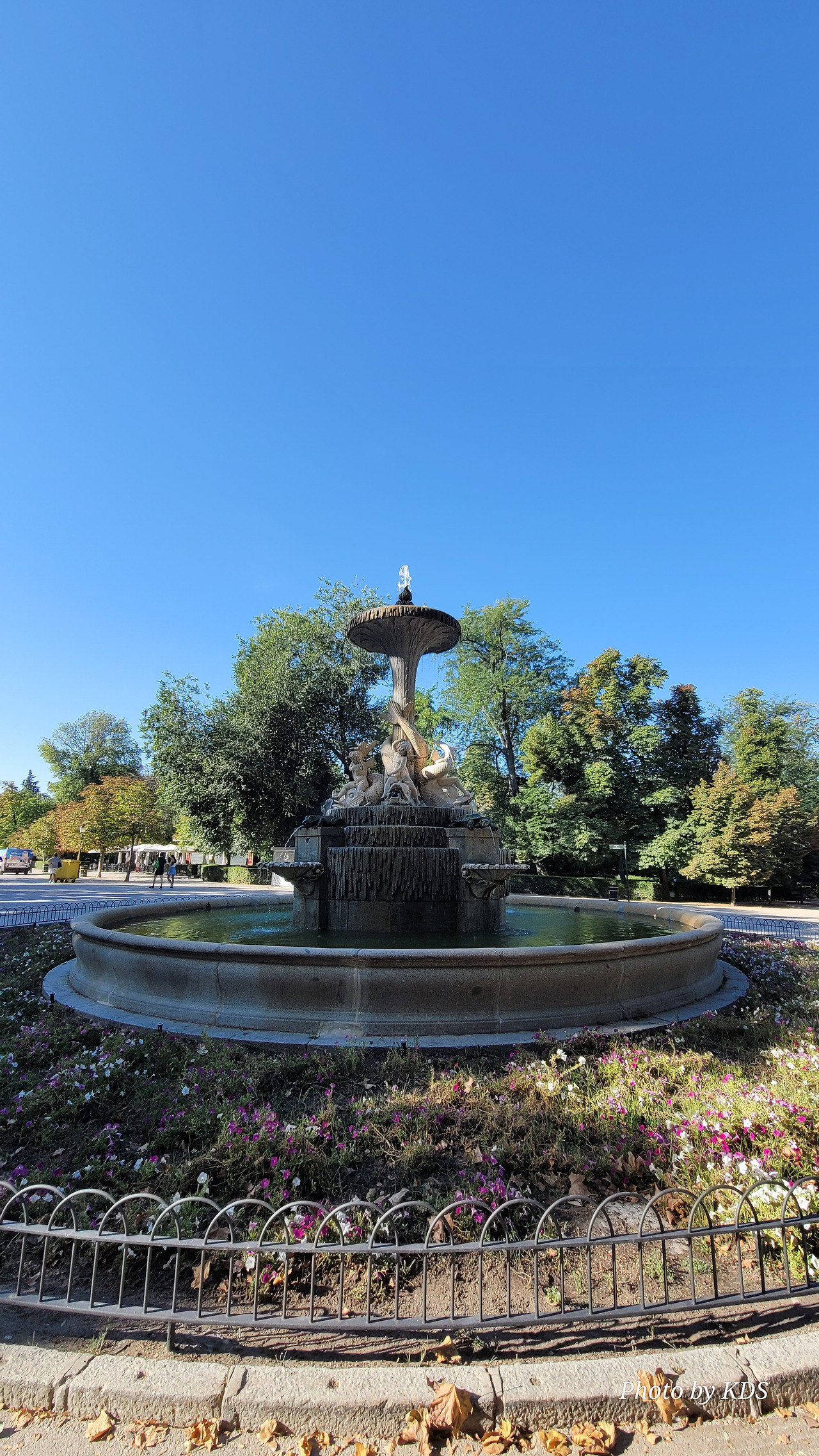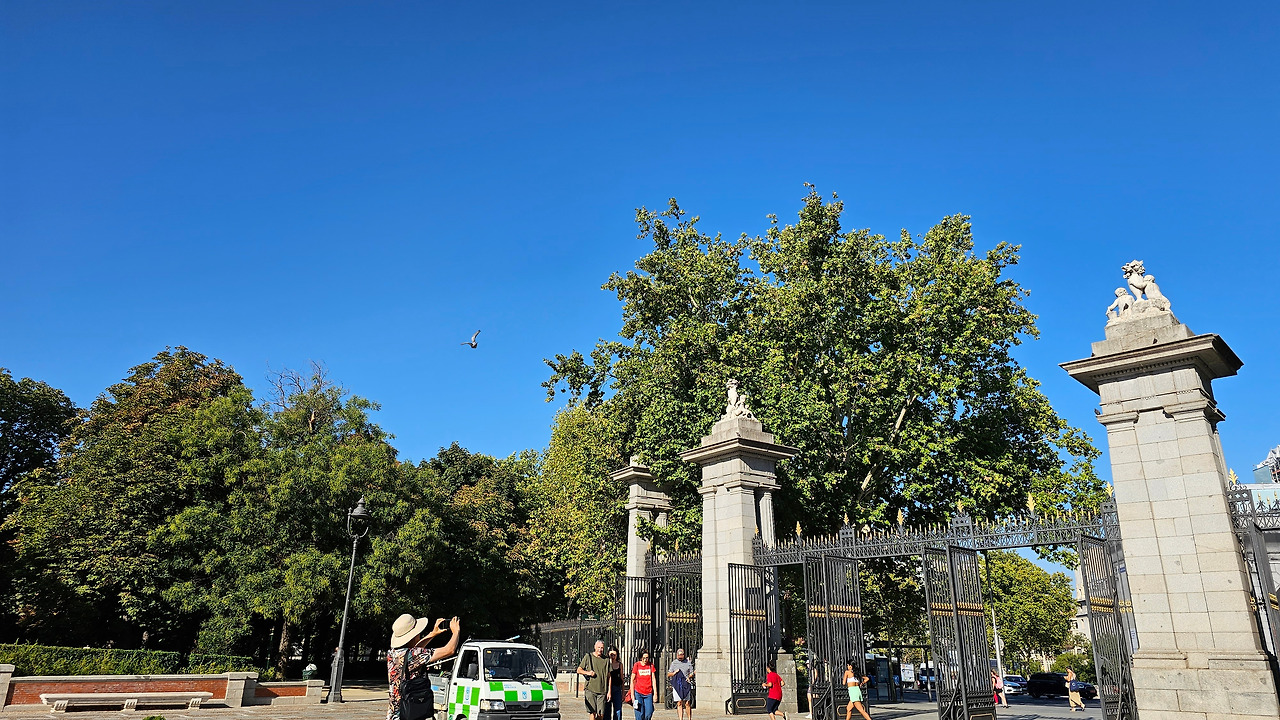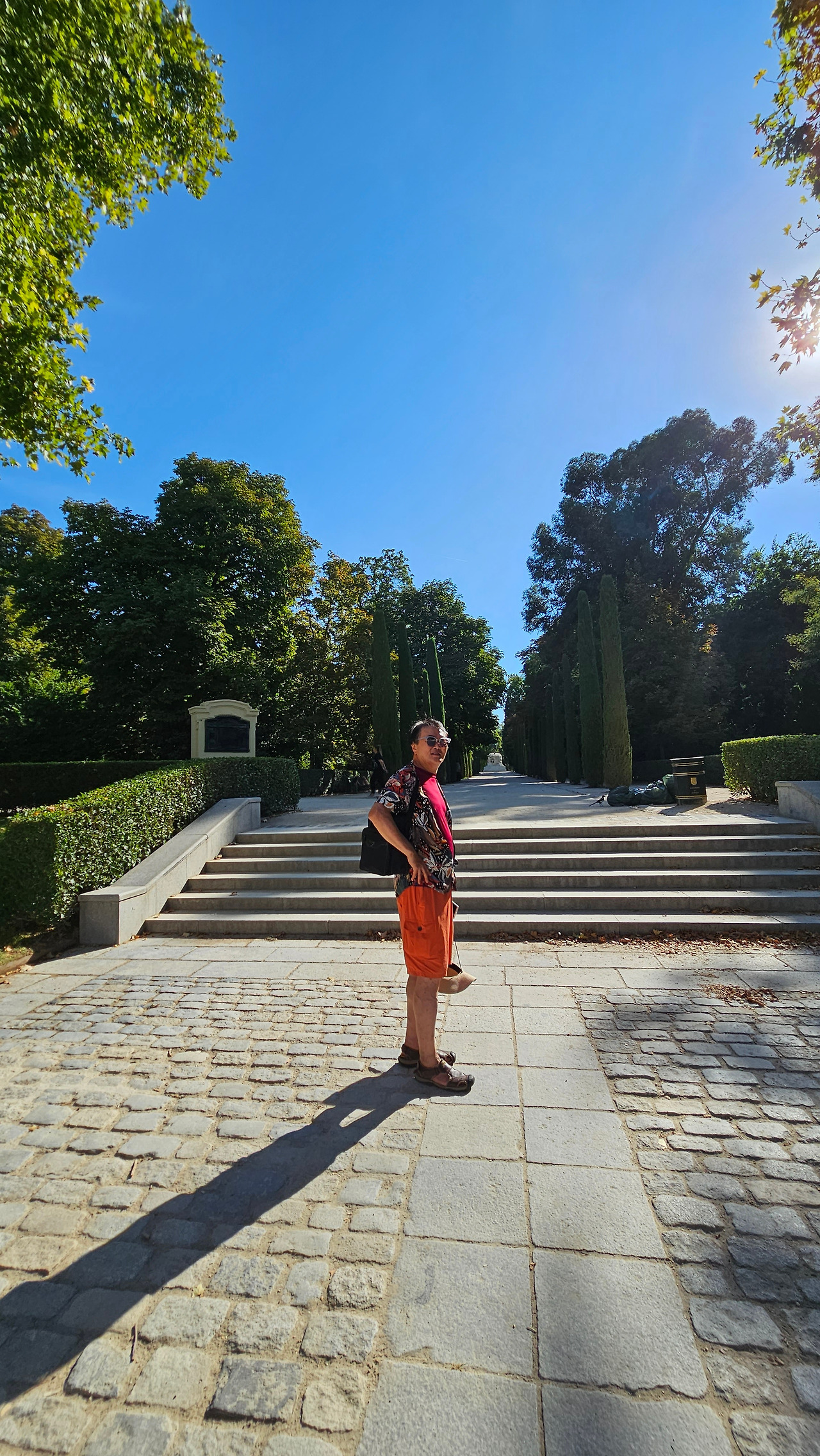 프라도 미술관 근처에 아주 큰 엘 레티로 정원(Parque El Retiro)가 있어서 방문해 보니 대단했다. 이 공원은 125헥타르에 15,000그루 이상의 나무와 호수가 있어서 마드리드 중심부에 있는 푸른 안식처로 허파의 구실은 한다. 워낙커서 다양한 세부 정원으로 구분할 수 있다. Vivaces 정원, Cecilio Rodríguez 정원(안달루시아 풍의 고전주의 정원), 건축가 Herrero Palacios 정원, 재건된 Montaña de los Gatos 정원, Rosaleda(장미 정원) 등이 있다. 레티로 호수, 크리스탈 궁전, 타락한 천사의 분수, 벨라스케스 궁전도 있다. 특이하게 마드리드에서 가장 오래된 나무인 아우에우에테(Ahuehuete)가 있는 프렌치 파테르(Parterre French)는 수령이 약 400년이라고 하는데, 실제 더 오래된 나무는 푸에르타 델 앙헬 카이도(Puerta del Ángel Caído) 출입구 근처 초원 중 하나에 심어져 있는 올리브나무인데 1396년에 심은 거라니 우리나라 조선의 역사랑 비슷하다. 공원이 워낙 크다 보니 출입구가 17개(주요한 문 : 펠리페 4세 문, 독립문, 스페인 문, 마드리드 문, 에르나니 문 등)가 있다. 2021년 7월 25일부터 파세오 델 프라도(Paseo del Prado)와 함께 유네스코 세계문화유산 으로 지정되었다.