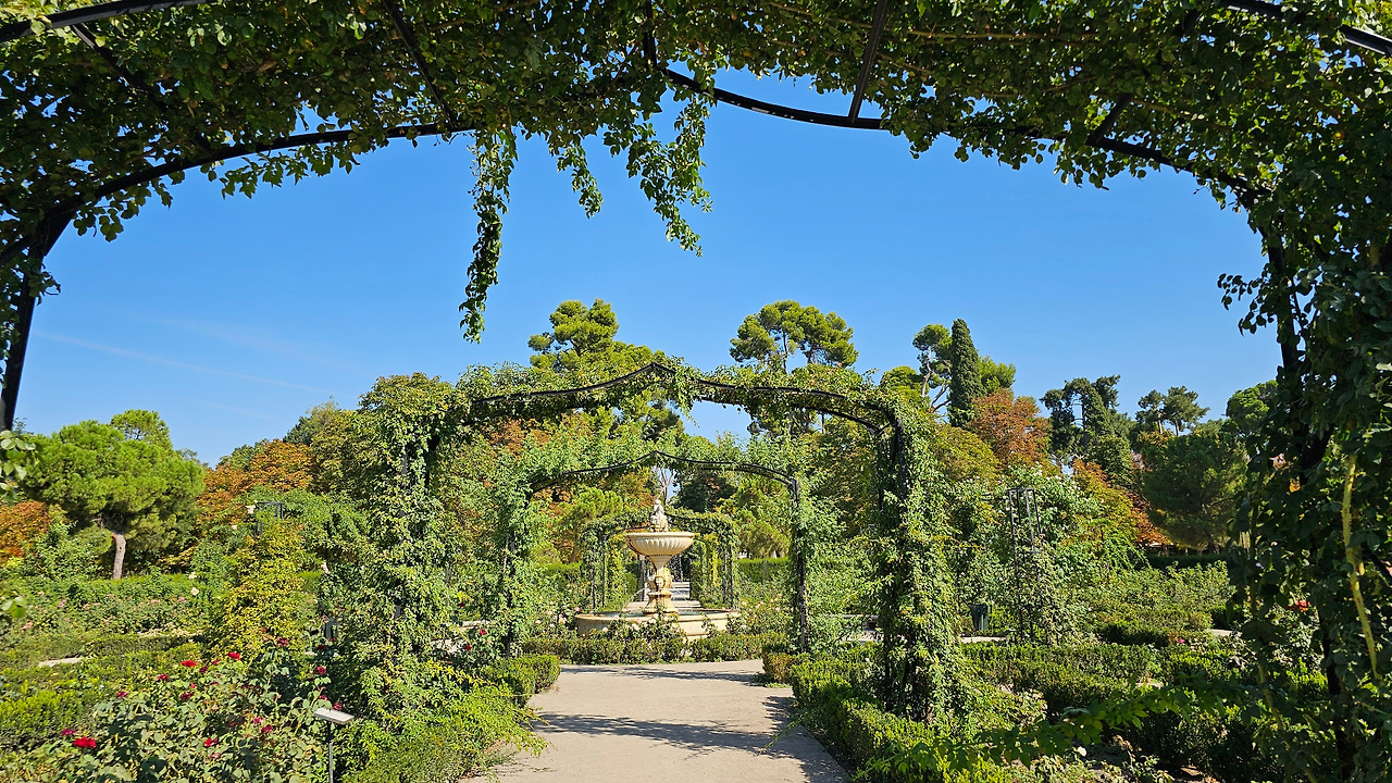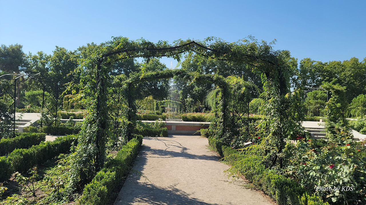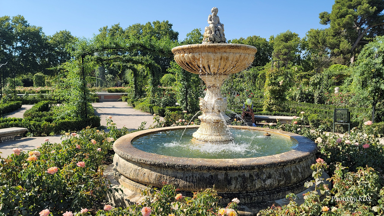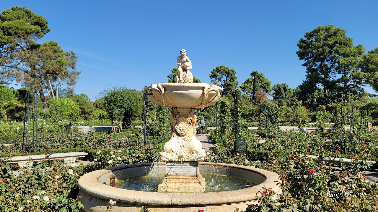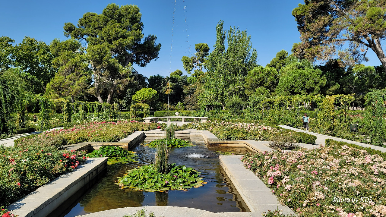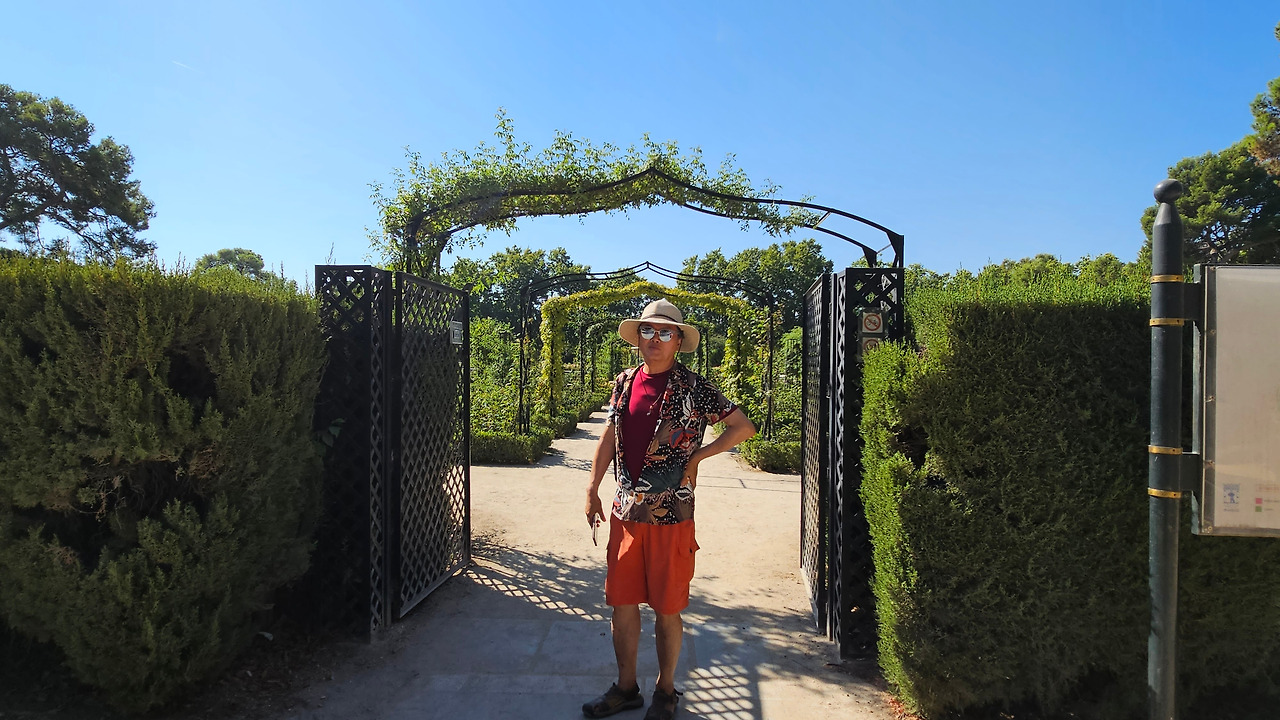 로살레다 델 레티로(Rosaleda del Retiro)는 마드리드 시장 Carlos Prast y Rodríguez del Llano의 의뢰로 빌라 시장 정원사인 Cecilio Rodríguez가 1915년에 설계했다. Rodríguez는 파리의 볼로뉴 숲(Bois de Boulogne)에 있는 Bagatelle Rose Garden에서 영감을 받아 그가 디자인한 가장 중요한 정원 공간인 장미 정원을 만들었다. 유럽의 여러 정원에서 온 장미나무를 심었고, 조성 당시에는 로세리아(Rosería)라는 이름을 받았다. 정원이 위치한 지역은 살라망카 후작의 소유였던 큰 온실이 있었다. 예전에는 겨울이면 아이스링크가 되는 연못이 있었다고 한다. 장미 정원은 스페인 남북 전쟁 중에 파괴되었으며, 1941년에 4,000그루의 장미를 다시 심었다. 금삿갓이 방문한 시기는 8월 말경이라서 장미꽃들을 대부분 지고 늦게 핀 꽃 몇 송이만 볼 수 있었다.
