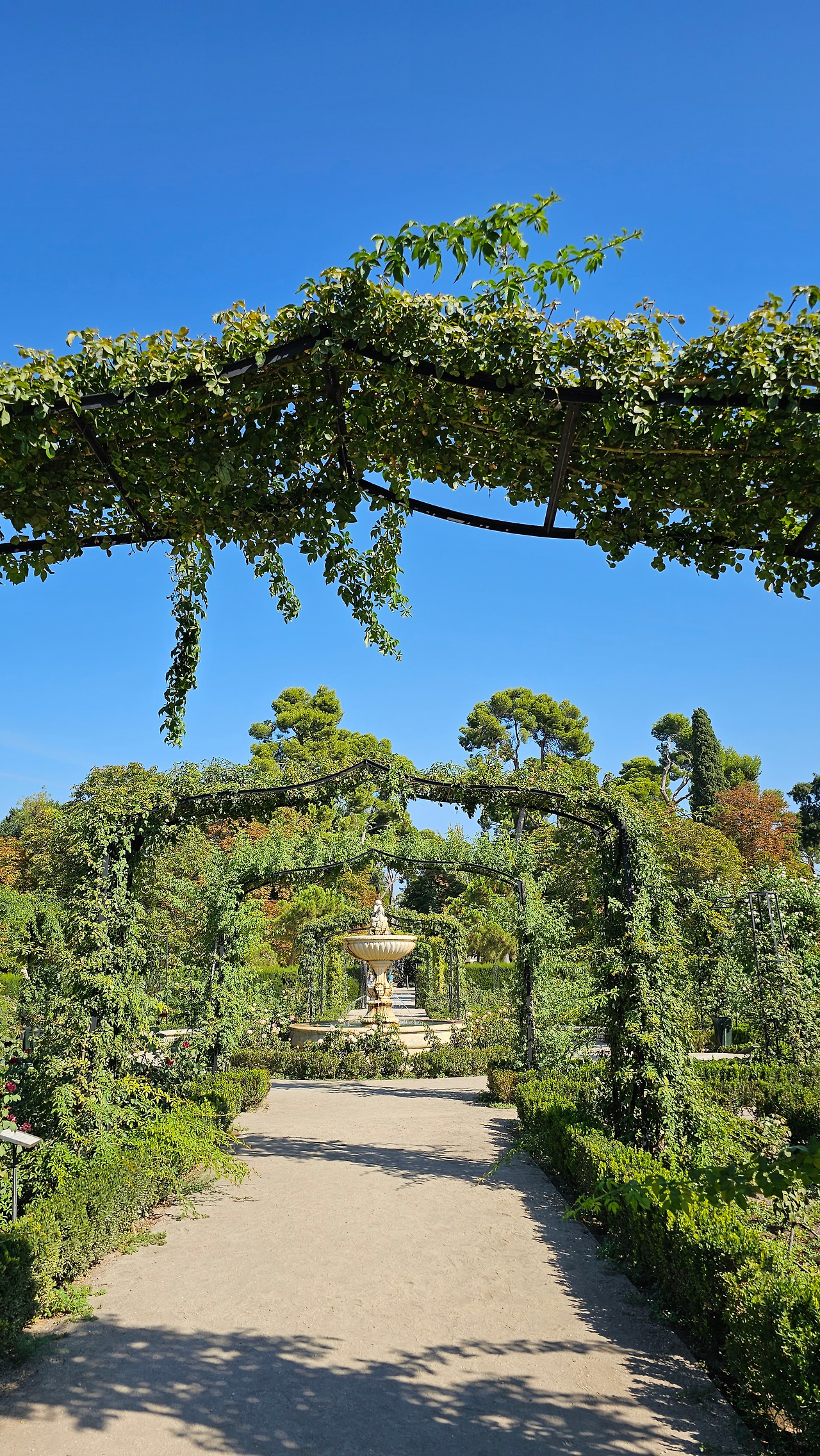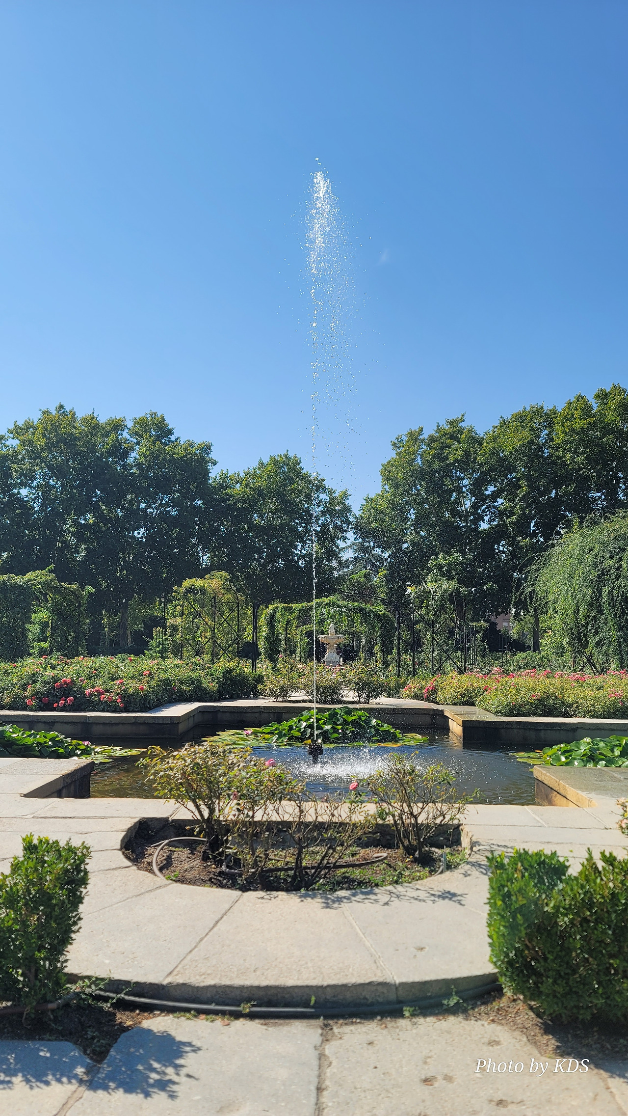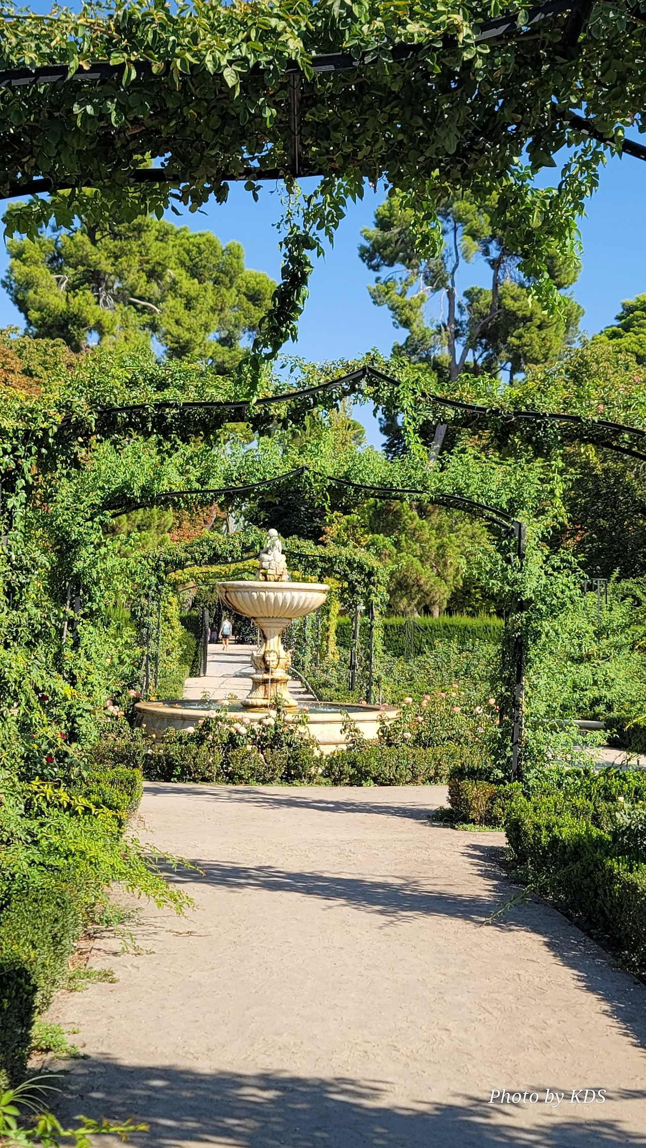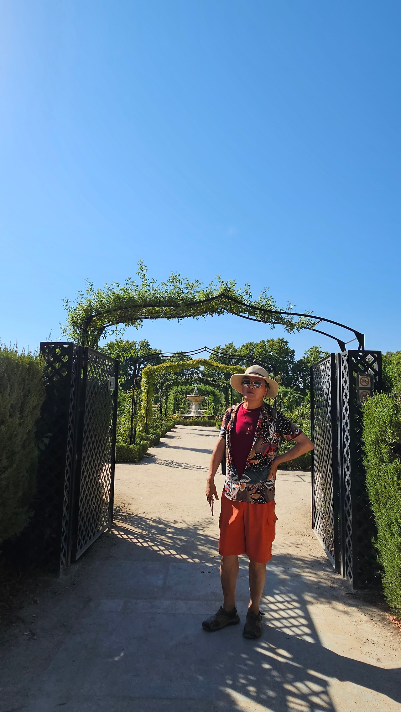 로살레다 델 레티로(Rosaleda del Retiro)는 마드리드 시장 Carlos Prast y Rodríguez del Llano의 의뢰로 빌라 시장 정원사인 Cecilio Rodríguez가 1915년에 설계했다. Rodríguez는 파리의 볼로뉴 숲(Bois de Boulogne)에 있는 Bagatelle Rose Garden에서 영감을 받아 그가 디자인한 가장 중요한 정원 공간인 장미 정원을 만들었다. 유럽의 여러 정원에서 온 장미나무를 심었고, 조성 당시에는 로세리아(Rosería)라는 이름을 받았다. 정원이 위치한 지역은 살라망카 후작의 소유였던 큰 온실이 있었다. 예전에는 겨울이면 아이스링크가 되는 연못이 있었다고 한다. 장미 정원은 스페인 남북 전쟁 중에 파괴되었으며, 1941년에 4,000그루의 장미를 다시 심었다. 금삿갓이 방문한 시기는 8월 말경이라서 장미꽃들을 대부분 지고 늦게 핀 꽃 몇 송이만 볼 수 있었다.