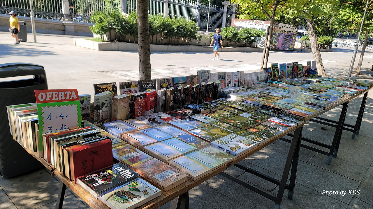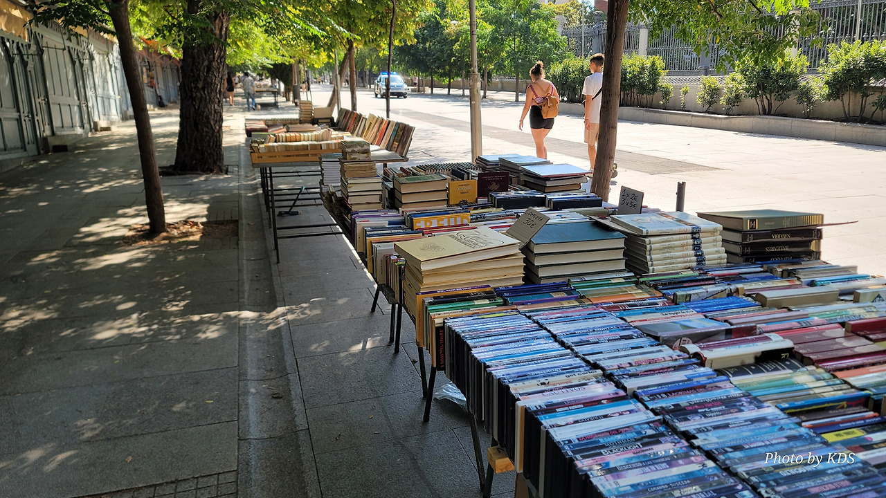 엘 레티로(El Retiro) 공원을 나오는 문은 17개나 되어서 방향마다 있는데, 프라도 미술관 옆에 있는 왕립식물원 쪽으로 나오면 헌책방 거리가 조성되어 있다. 거리 이름은 클라우디오 모야노인데, 쿠에스타 데 모야노(La Cuesta de Moyano)라고도 불린다. 중고 서적을 취급하는 헌책방이 즐비하게 이어져 있다. 금삿갓이 갔을 때는 모든 서점이 문을 열지는 않았고 일부만 열고 영업을 하고 있었다. 레티로 공원 근처에 위치하고, 이 지역을 통과하는 맛있는 산책로 때문에 주말과 저녁에는 호기심 많은 구경꾼과 관광객으로 붐빌 가능성이 높으므로 아침에 가는 것이 좋다.