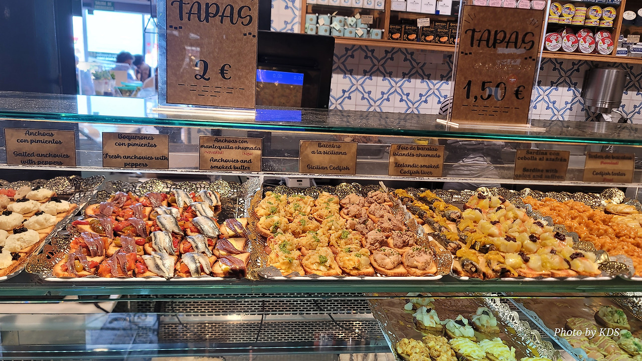 마요르 광장 부근에 위치한 산 미구엘 시장(Mercado de San Miguel)은 1916년에 만들어진 전통적인 재래시장으로 개장한 지 100년이 넘은 시장이다. 2009년 리모델링을 통해 유리 외벽으로 둘러진 세련된 느낌의 실내 마켓으로 새롭게 단장하였다. 연간 700만 명이 넘는 방문객들이 찾아오는 식도락의 전문 시장이라고 해도 틀림없다. 마드리드 시민들의 현지 식탁을 옮겨 놓은 듯 다양한 식재료를 구경할 수 있다. 과일, 해산물은 물론 맥주, 베이커리, 타파스 등 끼니를 때울 수 있는 다양한 음식점도 찾아볼 수 있다. 어느 도시를 가나 늘 시장을 방문하는 금삿갓의 습관으로 마드리드에서도 산 미겔 시장을 둘러보고 한 끼를 때우기로 한 것이다. 최고의 이베리아 햄이나 갈리시아에서 매일 도착하는 가장 신선한 해산물부터 지중해 쌀 요리 또는 카스티야, 아스투리아스 또는 바스크 지방의 가장 특별한 치즈까지. 산미겔 시장(San Miguel Market)에서는 고품질 타파스에 대한 공통된 노력을 기울이는 30개 이상의 가판대에서 스페인 요리법의 하이라이트를 발견할 수 있었다. 그중에서도 유명한 것은 Rocambolesc에 있는 Joan Roca(미슐랭 스타 3개)의 장인이 만든 천연 아이스크림, Paella에 있는 Rodrigo de la Calle(미슐랭 스타 1개)의 전통 쌀 요리 또는 Arzabal의 Madrí에 있는 Grupo Arzabal의 전통 타파스가 있다. 마드리드에 위치한 장인 빵집인 Madreamiga는 제빵사 Begoña San Pedro, 셰프 Clara Villalón, Grosso Napoletano의 공동 창립자인 Hugo Rodríguez de Prada의 손에서 운영되고 있다. Primital과 그 고깃집인 Picolisto와 Quesería Quesoba의 토르티야는 높은 산 초원에서 풀을 뜯는 소의 우유로 장인 치즈를 생산하는 칸타브리아 회사제품이다.