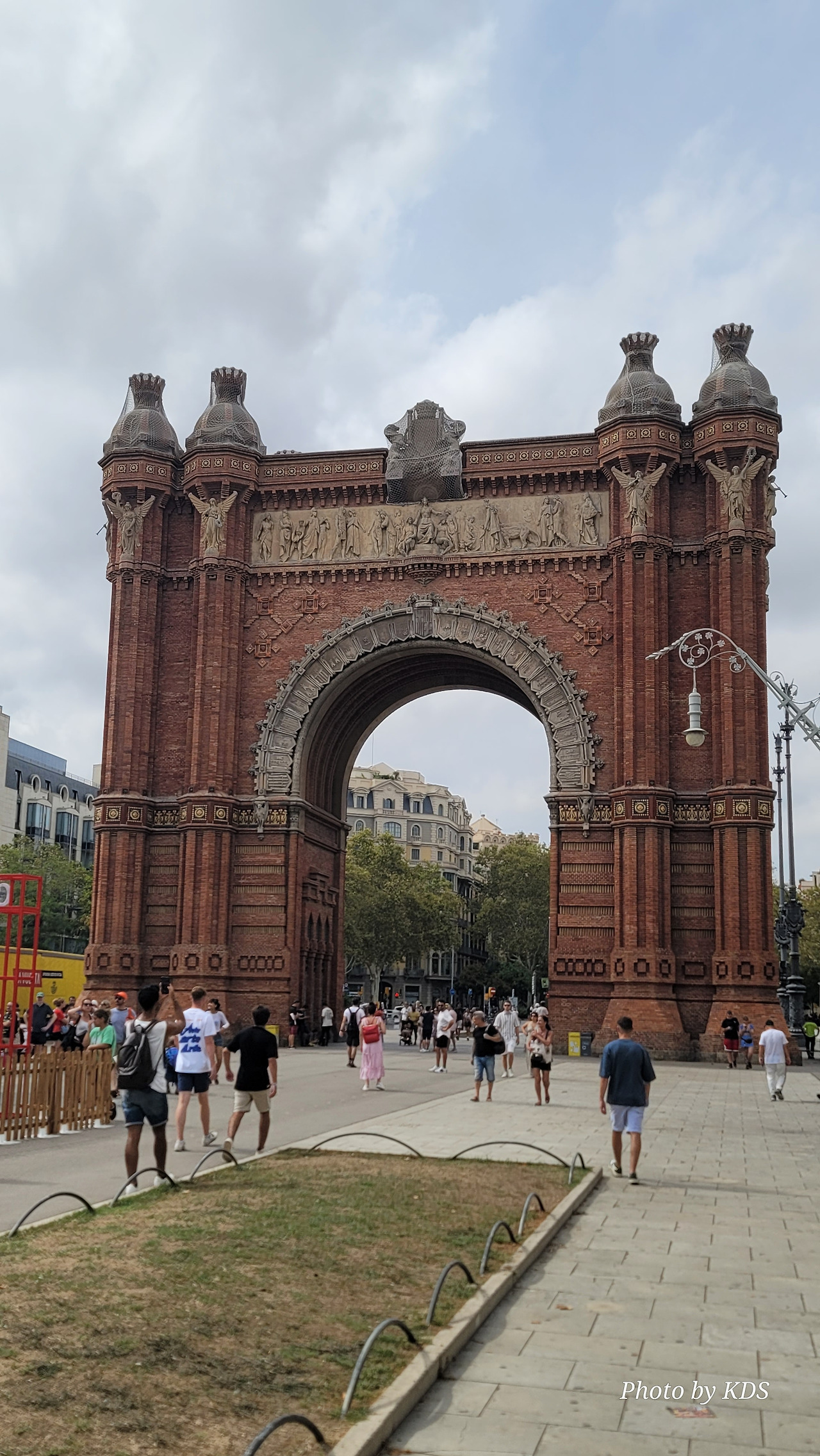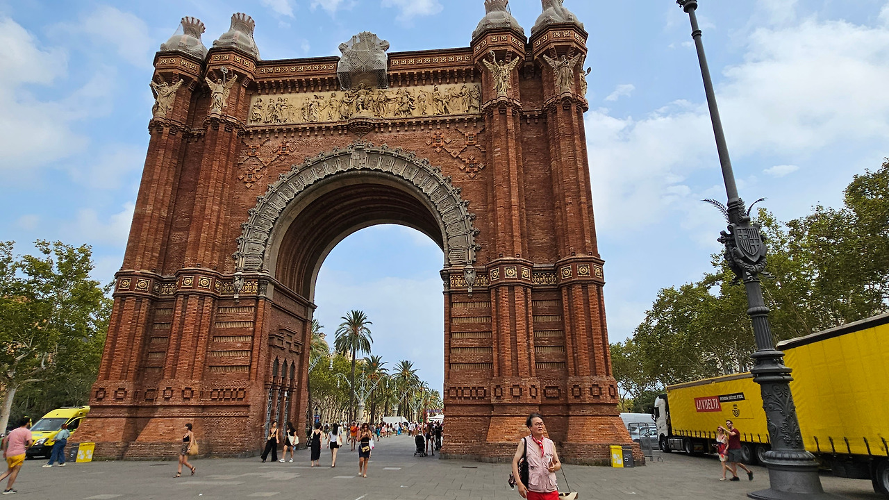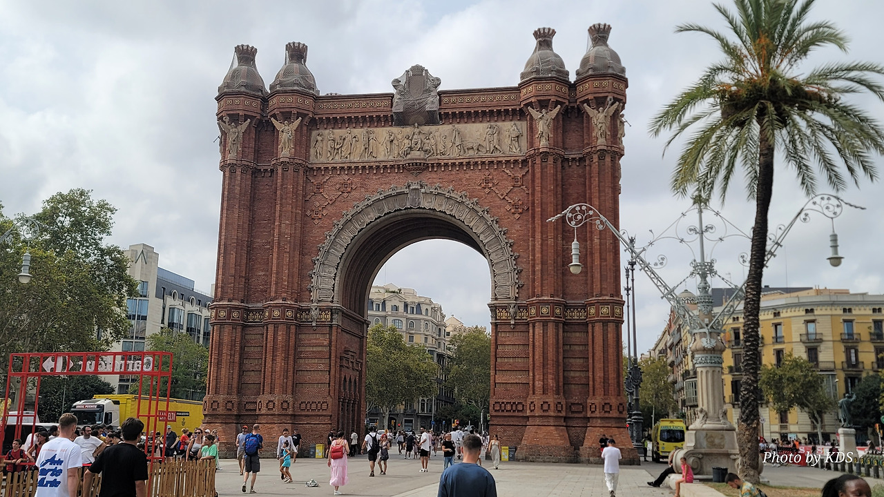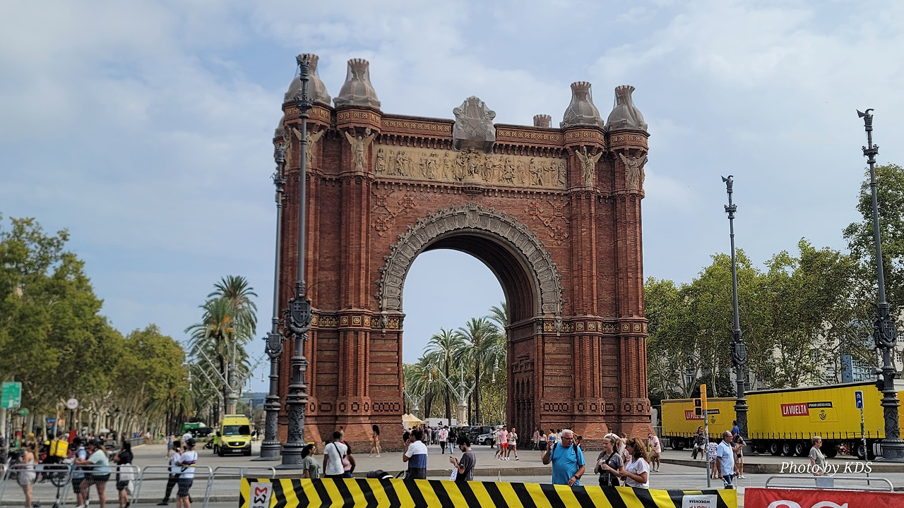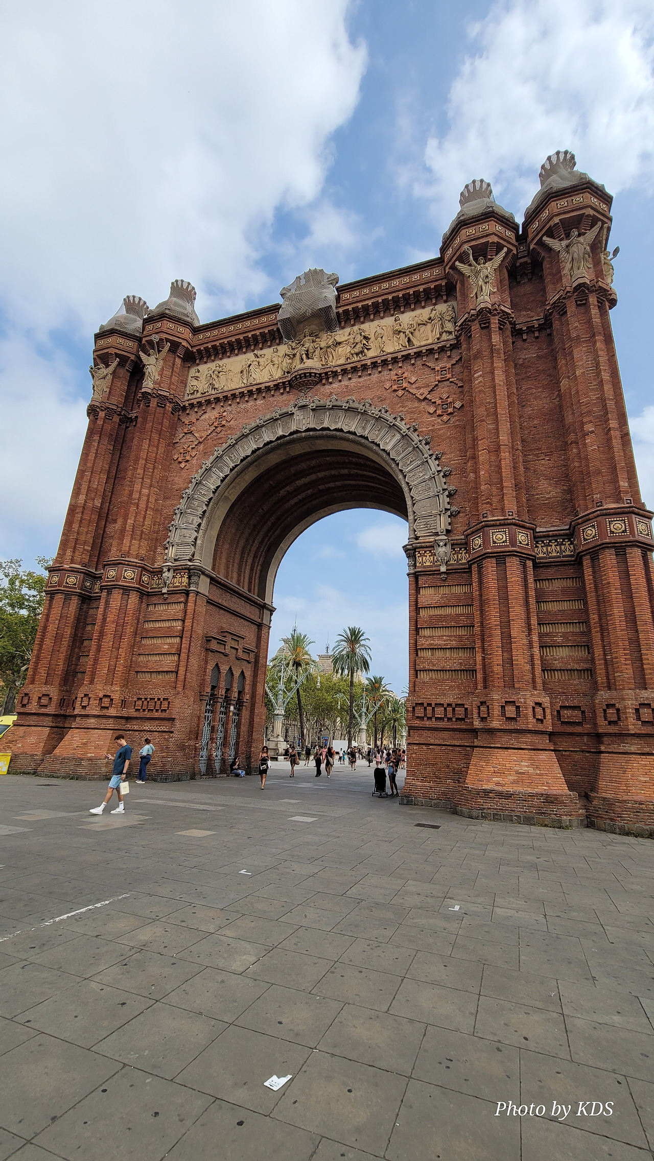 1888년 바르셀로나는 세계 박람회를 개최했는데, 개선문(Arc de Triomf)은 시우타델라 광장에서 열린 박람회의 관문으로 지어졌다. 형태와 비율이 고전적이며 상징성으로 가득 찬 획기적인 조각 및 장식 마감이 특징인 개선문은 당시 도시의 상징적인 랜드마크 중 하나가 되었다. 개선문(Arc de Triomf)은 살로 데 산트 호안 끝에 서 있었는데, 이는 시우타델라 광장의 전시장으로 이어지는 대로 입구다. 건축가 요제프 빌라세카 이 카스노바스는 전시회에 참가하는 국가와 지방에 대한 바르셀로나의 존경을 보여주는 우화로서 고전적인 스타일과 비례의 기념비를 디자인했다고 한다. 빌라세카는 대척점으로 벽돌로 아치를 만들고 당시 스페인에서 매우 유행했던 신 무데자르 양식을 연상시키는 조각적인 모티프로 장식하는 것을 선택했다. 아치 주변의 일련의 프리즈(Frieze)와 붉은 벽돌의 조합은 그것을 하나의 아름다운 랜드마크로 만든다. 건축물의 파세이그 데 산트 호안이 내려다보이는 프리즈는 바르셀로나가 참가 국가들을 환영하는 모습을 그리고, 공원을 마주하고 있는 프리즈는 바르셀로나가 전시회 참가자들에게 메달을 수여하는 모습을 보여준다. 한쪽에는 농업과 산업, 다른 한쪽에는 상업과 예술을 상징하는 구호물이 있다. 아치의 꼭대기에는 49개 스페인 지방의 문장이 있고, 바르셀로나 시의 문장이 주재하고 있다. 개선문은 다른 많은 도시에서도 찾을 수 있는데, 가장 유명한 것은 파리의 개선문, 런던의 웰링턴 아치, 뉴욕시의 군인과 선원의 아치, 부쿠레슈티의 개선문과 로마 시대의 많은 아치가 있으며, 평양에도 있다. 그러나 이 아치는 군사적인 아치가 아니다. 전쟁을 낭만화하지 않고, 스페인의 군사적 승리를 기념하려는 의도도 없으며, 오히려 참가국가와 사람들을 환영하려는 의도다.
