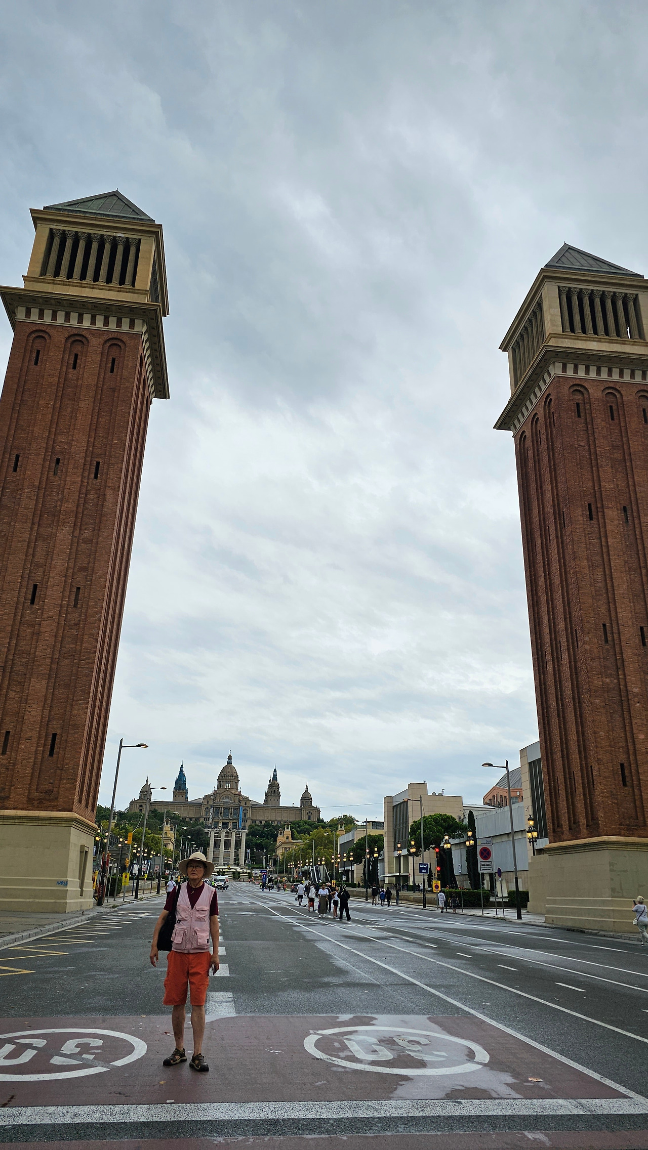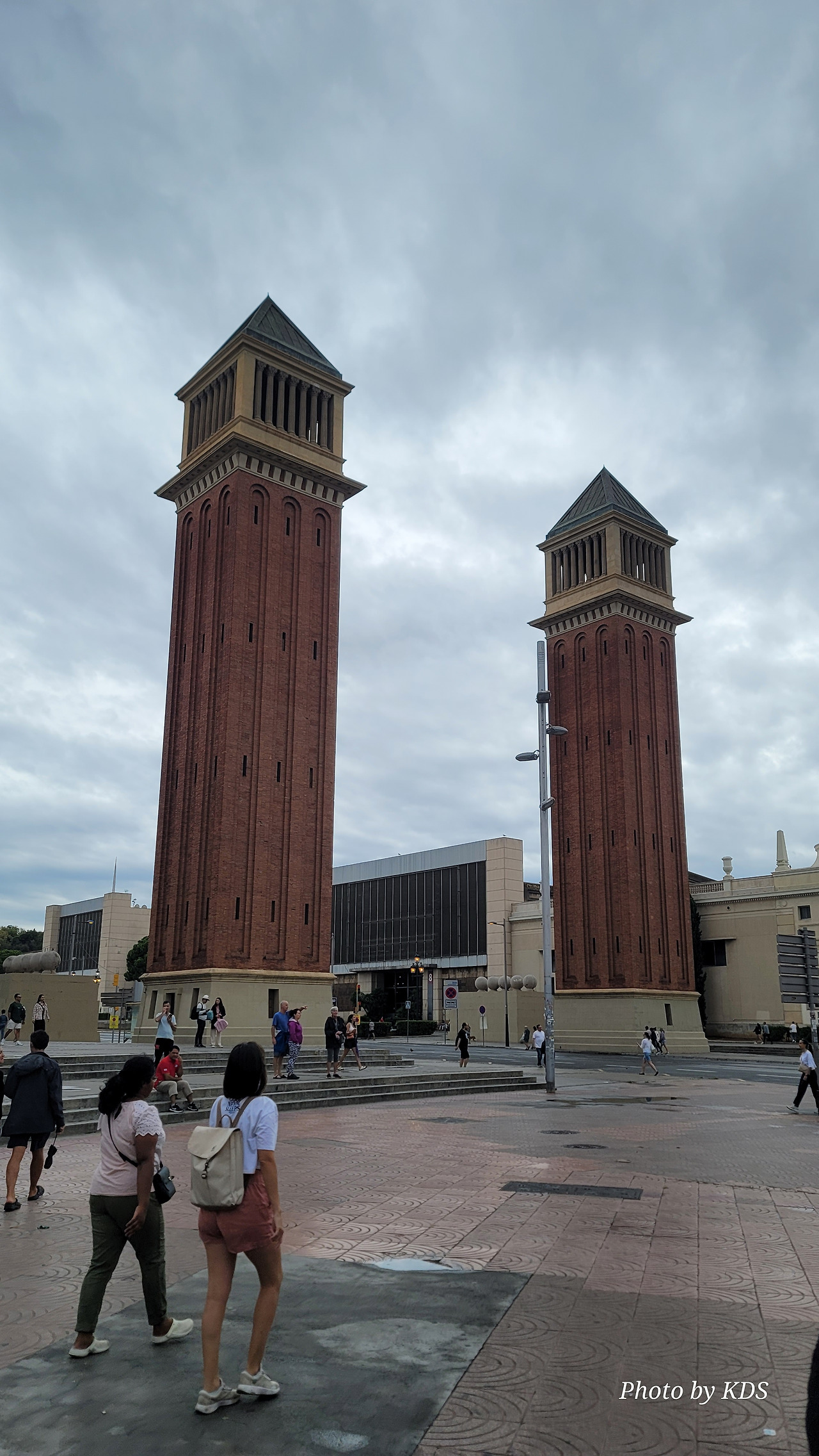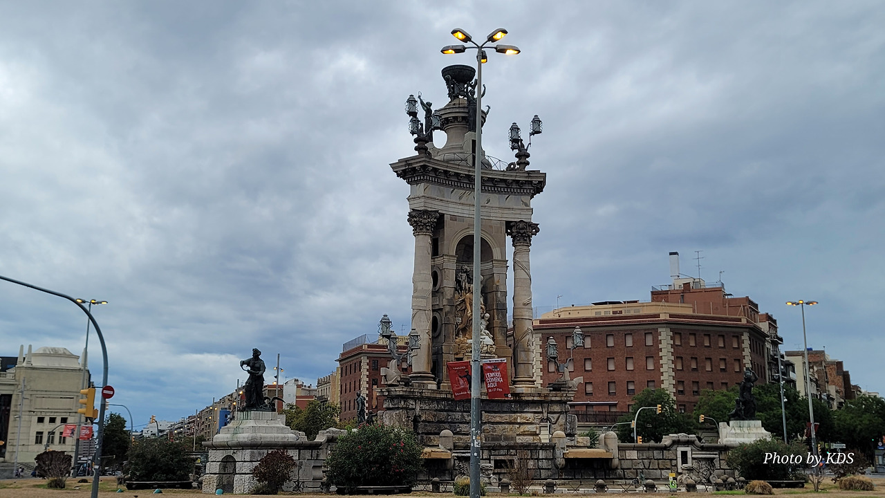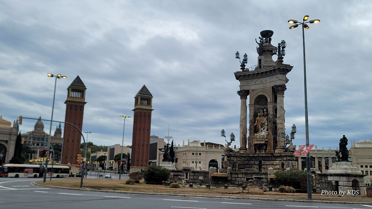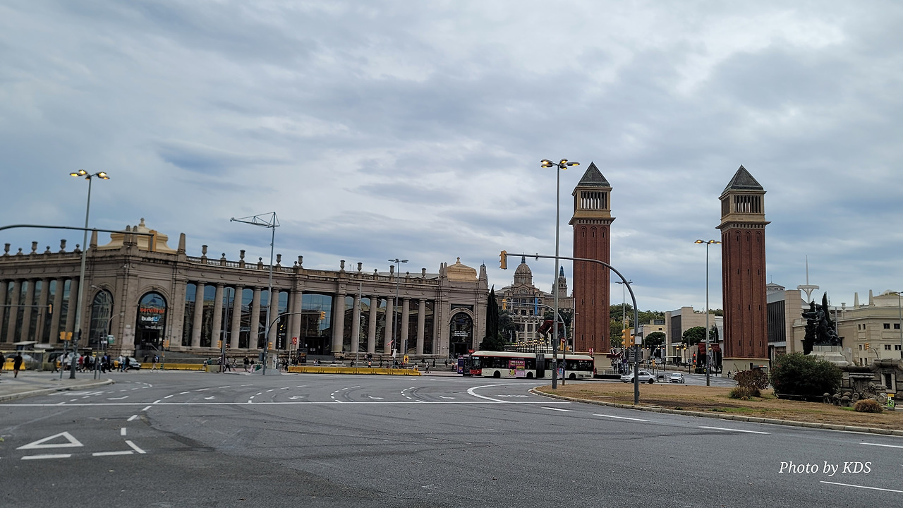 에스파냐 광장(Placa de Espanya)은 1929년 바르셀로나 만국박람회를 기념하여 몬주인 산기슭이 시작되는 곳에 건설되었다. 이곳은 도시의 주요 도로의 교차점이며, 바르셀로나 최고의 박물관 중 하나인 카탈루냐 국립 미술관(MNAC)으로 연결된다. 광장 중앙에 있는 분수는 Antoni Gaudí의 공동 작업자인 Josep Maria Jujol이 디자인했고, Miquel Blay는 조각상을 디자인했다. 국립미술관으로 가는 길목에는 베네치아 타워가 우뚝 서 있다. 베네치아 타워는 높이가 47m(154피트)이며, 당시 무역 박람회를 개최하는 데 사용된 거리인 아빙구다 데 라 레이나 마리아 크리스티나(Avinguda de la Reina Maria Cristina)를 통해 국립박물관(MNAC)으로 이어진다. 반대편의 원형경기장은 1900년에 무어 양식으로 지은 투우경기장이었다. 요즘은 투우 경기를 하지 않아서 종합쇼핑센터로 이용되고 있으며 지하철과 연결되어 있다. 이 광장은 1715년에 건설된 시우타델라 요새였고, 교수형이 집행되던 장소로도 사용되었다고 한다. 금삿갓이 갔을 때는 마침 사이클 경기대회가 열리고 있던 시기라서 도로를 막고 자전거 경주가 열리고 있었다. 시내 전체를 돌고 돌아서 올림픽이 열렸던 몬주익 언덕으로 선수들이 달려갈 예정이었다.