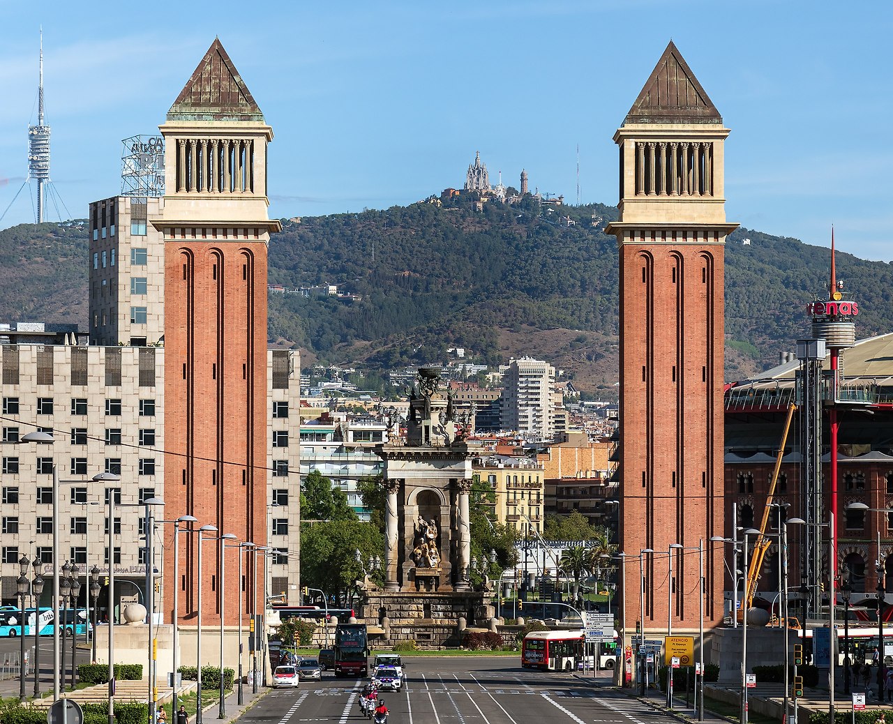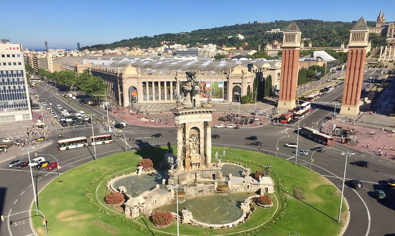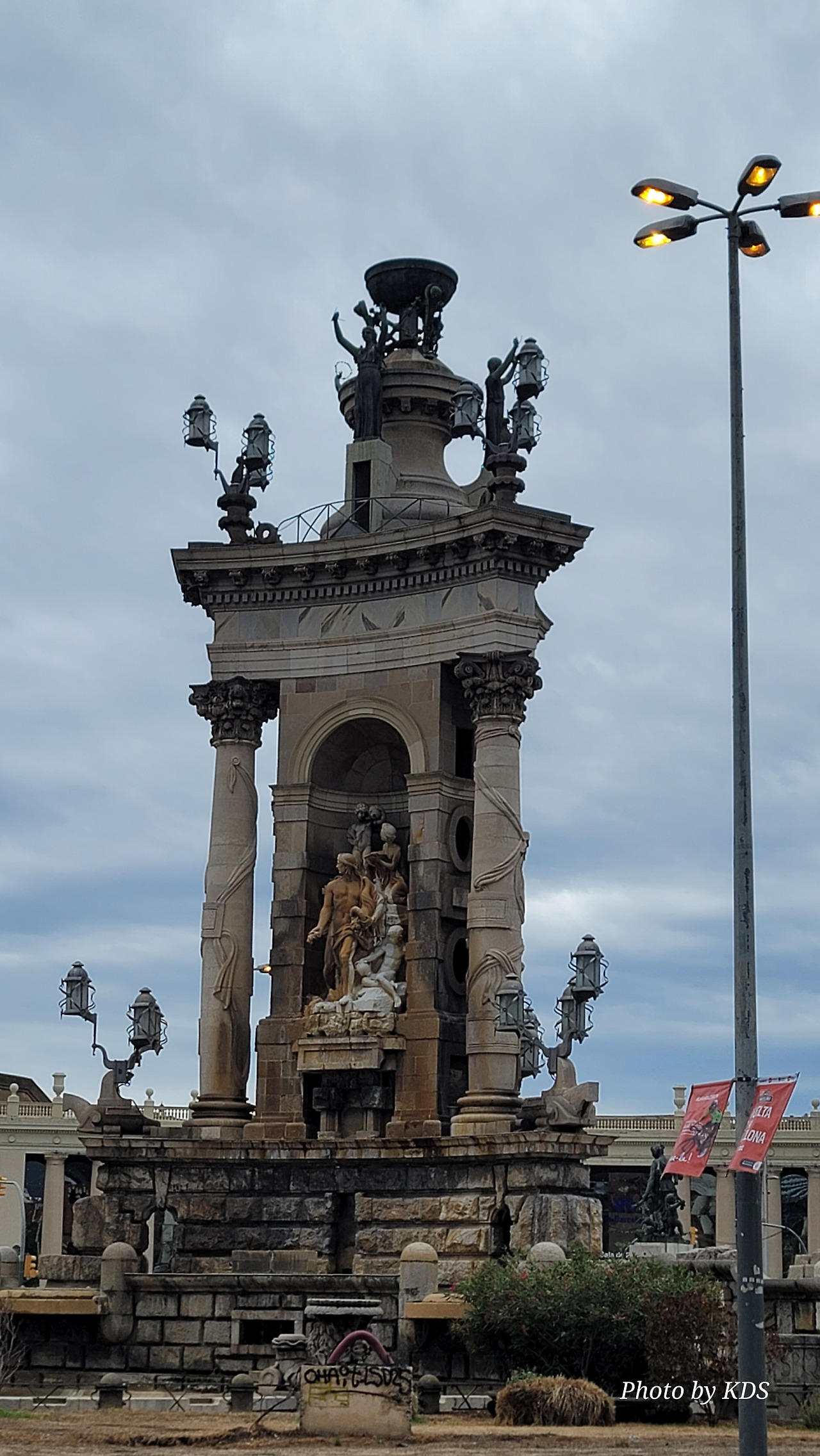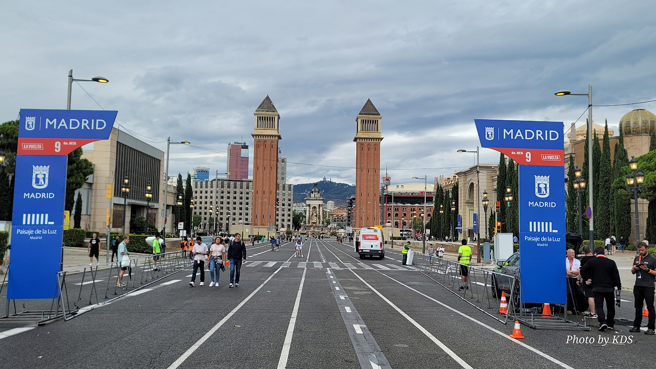 에스파냐 광장(Placa de Espanya)은 1929년 바르셀로나 만국박람회를 기념하여 몬주인 산기슭이 시작되는 곳에 건설되었다. 이곳은 도시의 주요 도로의 교차점이며, 바르셀로나 최고의 박물관 중 하나인 카탈루냐 국립 미술관(MNAC)으로 연결된다. 광장 중앙에 있는 분수는 Antoni Gaudí의 공동 작업자인 Josep Maria Jujol이 디자인했고, Miquel Blay는 조각상을 디자인했다. 국립미술관으로 가는 길목에는 베네치아 타워가 우뚝 서 있다. 베네치아 타워는 높이가 47m(154피트)이며, 당시 무역 박람회를 개최하는 데 사용된 거리인 아빙구다 데 라 레이나 마리아 크리스티나(Avinguda de la Reina Maria Cristina)를 통해 국립박물관(MNAC)으로 이어진다. 반대편의 원형경기장은 1900년에 무어 양식으로 지은 투우경기장이었다. 요즘은 투우 경기를 하지 않아서 종합쇼핑센터로 이용되고 있으며 지하철과 연결되어 있다. 이 광장은 1715년에 건설된 시우타델라 요새였고, 교수형이 집행되던 장소로도 사용되었다고 한다. 금삿갓이 갔을 때는 마침 사이클 경기대회가 열리고 있던 시기라서 도로를 막고 자전거 경주가 열리고 있었다. 시내 전체를 돌고 돌아서 올림픽이 열렸던 몬주익 언덕으로 선수들이 달려갈 예정이었다.