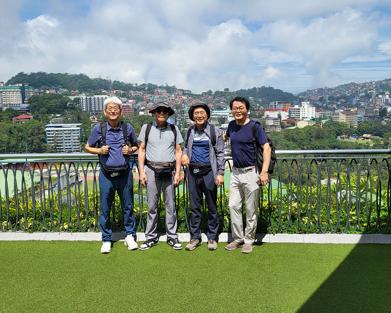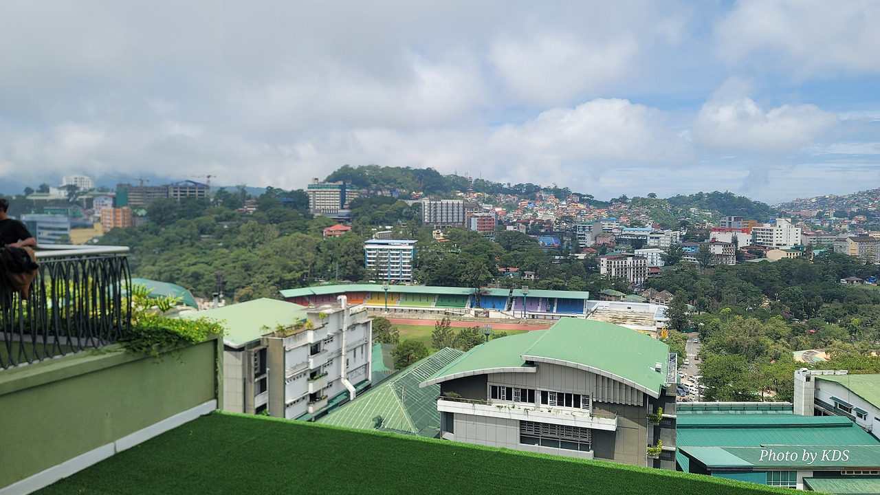 우리는 이곳의 여기저기를 둘러보고, 제일 꼭대기 층으로 올라가니 넓은 옥상 정원이 잘 가꾸어져 있고, 많은 사람들이 마치 소풍을 나온 것 같이 즐기고 있었다. 옥상에서 바라보는 바기오 시내는 한눈에 들어올 정도로 높은 곳이었다. 시내 중심에 번햄공원도 보이고, 아득히 저 멀리 있는 산꼭대기에도 집들이 빼곡하게 들어차 있다. 정말 산악 지형의 특별한 도시이다. 높은 지대라 바람이 차서 짧은 팔 셔츠를 입고 있으면 약간 추위를 느낄 정도이다. 이곳에는 커피숍과 음식점도 많고 모든 편의 시설이 잘 갖추어져 있고, 공기도 쾌적하여 우리가 할 일 없을 때 주로 이용할 아지트로 정했다. 옥상 정원 바로 앞에 있는 Figaro Coffee Shop이 그나마 한산하고 커피 맛도 있어서 이곳을 단골 아지트로 삼기로 했다. 점심도 이 건물 음식점에서 해결하고 지하 대형 슈퍼마켓에서 반찬거리 시장을 보아서 집에 가서 저녁을 해 먹기로 했다.