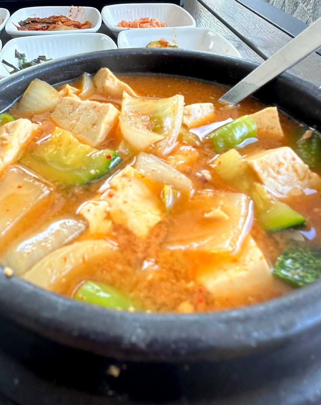 메뉴판을 보니 다양한 한식 메뉴들이 준비되어 있었는데, 메뉴의 모든 음식이 서비스되지는 않는다고 했다. 전골류에 부대찌개, 곱창전골, 순두부찌개, 김치찌개, 된장찌개 등이 있고, 해물 야채류에 오징어볶음, 해물파전, 고등어구이, 새우튀김 등이 있었다. 분식류에는 떡볶이, 치즈 라면볶이, 라면, 우동, 김밥, 군만두 등이고, 탕류에는 내장탕, 설렁탕, 감자탕, 해물매운탕, 갈비탕, 육개장 등이 있다. 육고기류에는 돼지(불고기, 갈비, 제육볶음, 보쌈, 삼겹살), 소고기(갈비찜, 불고기), 닭고기(닭갈비, 삼계탕, 양념치킨, 닭불고기) 등이다. 밥종류에는 공깃밥, 오므라이스, 김치볶음밥, 돌솥비빔밥, 각종 덮밥, 알밥이 있고, 면류에는 잡채, 물냉면, 비빔냉면, 비빔국수, 짜장면, 짬뽕 등 정말 다양했다. 거의 한국의 식단이다. 워낙 종류가 많다 보니 이 집에서 정말 제대로 우리 입맛에 맞게 조리를 해주는지가 의문스럽다. 그래서 주문하기가 더 어려웠다.
