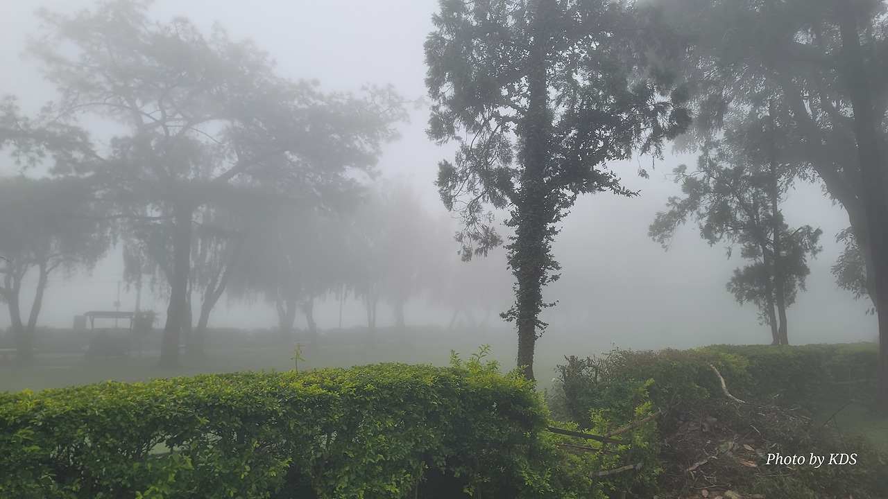 여기서도 먼 산의 계곡에 운해가 가득한 것을 보긴 했는데, 오늘은 바기오 시내가 운해의 바다에 잠기게 된 것이다. 방향 감각을 잘 모를 지경으로 짙은 안개가 마치 동화 속의 나라로 들어가는 것 같이 몽환적이었다. 도로를 달리는 자동차들도 시계의 어려움으로 전조등을 붉게 켜고 서행을 하니 더욱 신비로운 도시 모습이다. 번햄 공원을 지나서 숙소로 돌아가야 하는 우리들은 더듬거리면 범햄 공원 쪽으로 길을 잡아서 내려갔다. 공원의 모습은 더욱 신비롭다. 가보지는 못했지만 마치 무릉도원(武陵桃源)에 들어온 것 같은 느낌이다. 안갯속에서 희미하게 드러나는 나무들이 마치 수채화의 한 폭과도 같고, 이런 날씨에도 자전거 놀이 기구를 타는 사람들이 차라리 동화 속의 주인공 같았다.