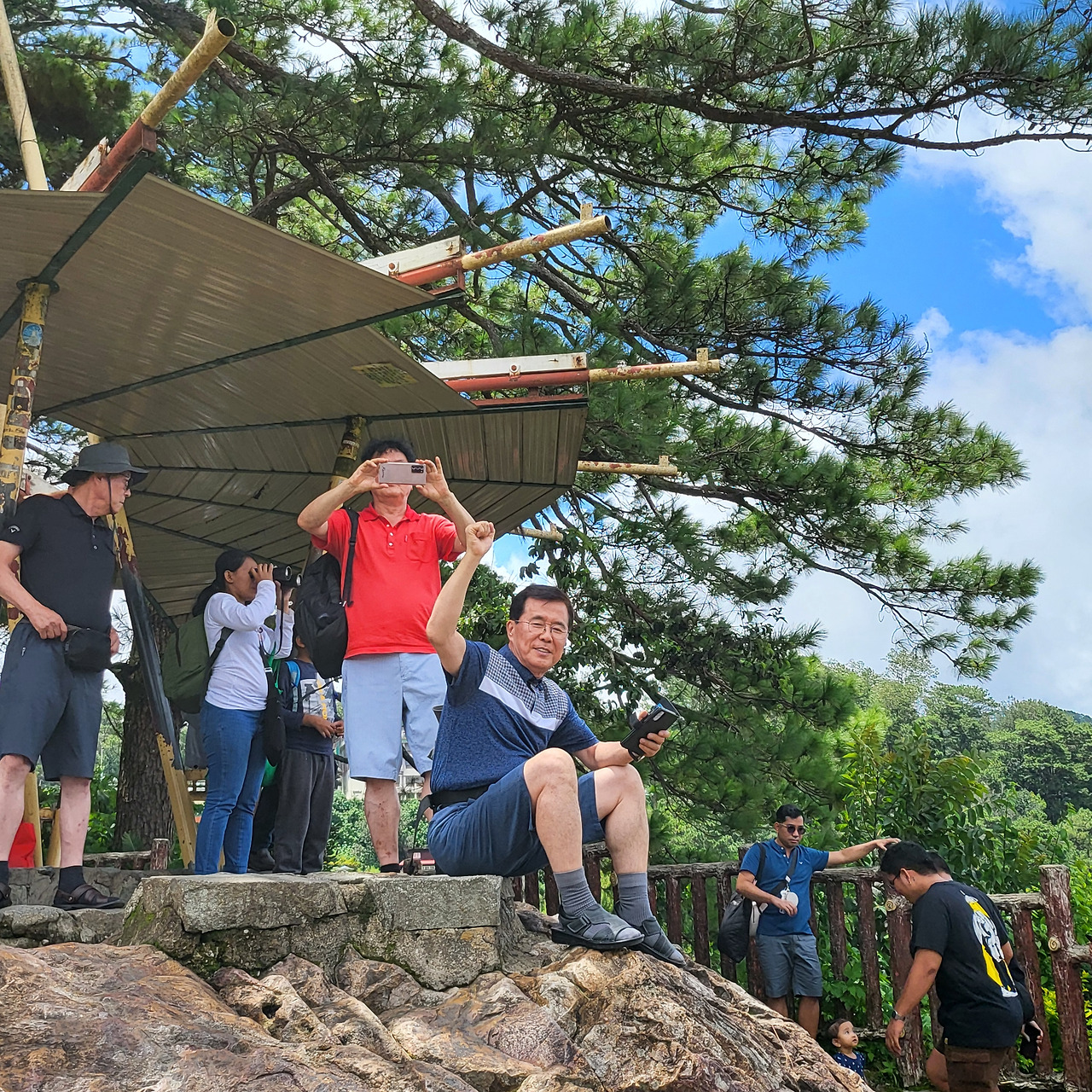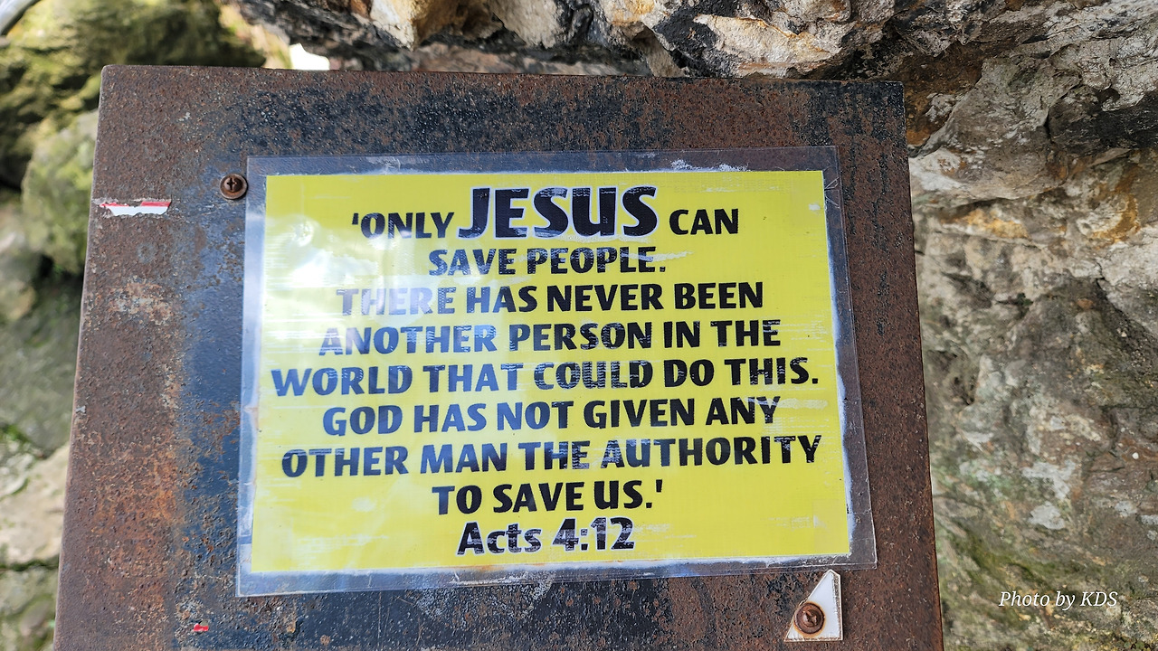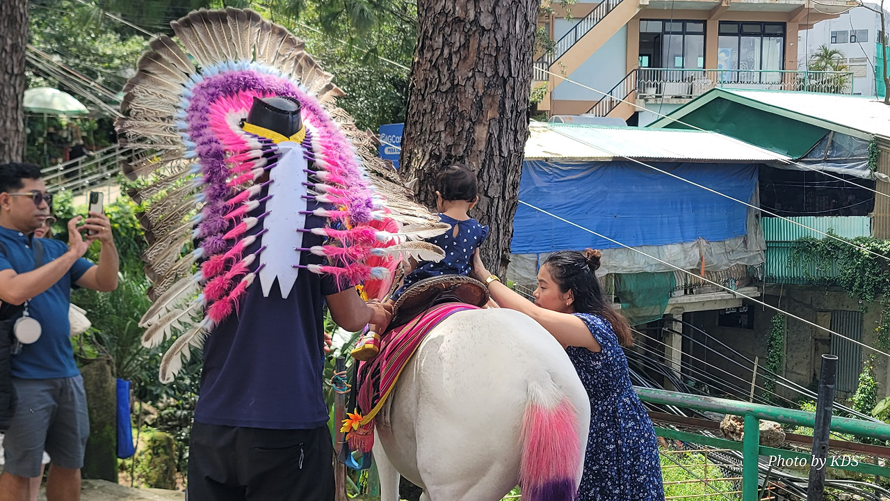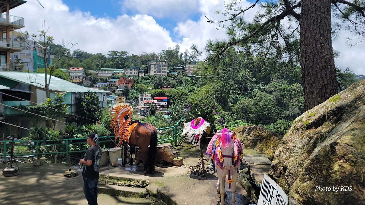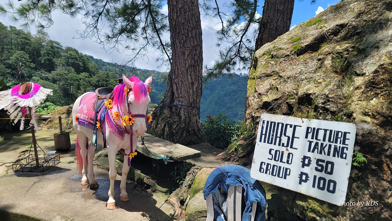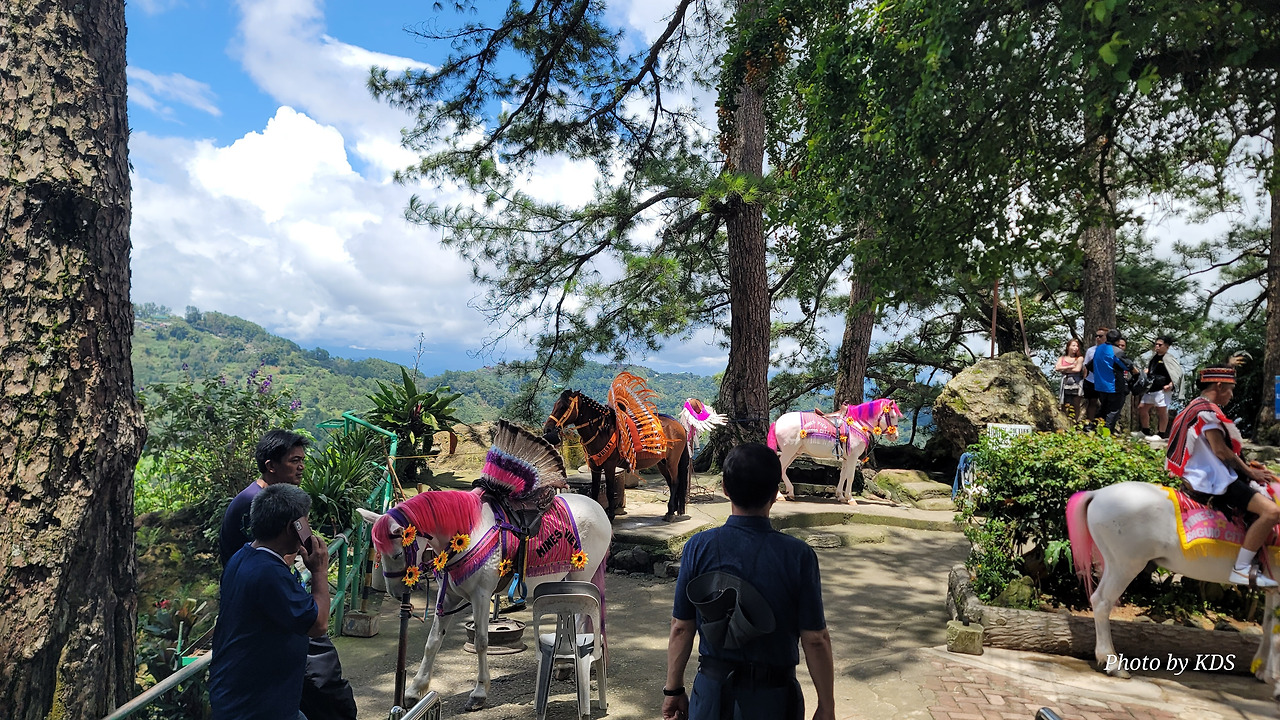 전망대 주변에는 말의 털에 알록달록하게 염색을 하고, 다양한 원주민 장식이나 장신구를 장착하여 관광객들이 사진을 촬영할 수 있도록 호객행위를 한다. 우리들의 시각으로 봐서는 별로 볼만한 것도 즐길 만한 것도 없지만 현지인 관광객들도 많이 오는 추세였다. 거리의 한쪽에는 엄청난 많은 수의 지푸니들이 줄을 서서 손님을 기다리는 광경도 보였다. 1970년대에 공원에는 전망대 바닥에서 관광객이 던진 동전을 줍는 아이들이 있었단다. 그러나 잦은 사고로 인해 시 정부는 모든 사람의 안전을 보장하기 위해 이 관행을 금지했단다. 지금도 혹시 실수나 자살을 위해 뛰어 내릴 것을 방지 하기 위한 성경의 사도행전 4장 12절의 문구를 크게 써 붙여 놓았다.