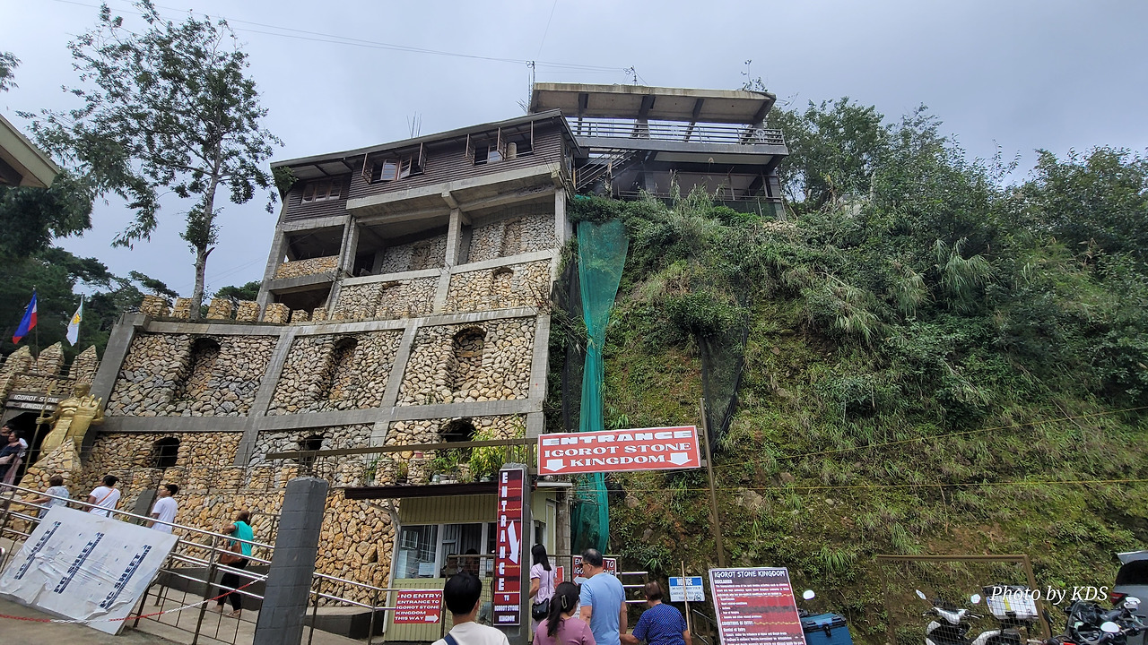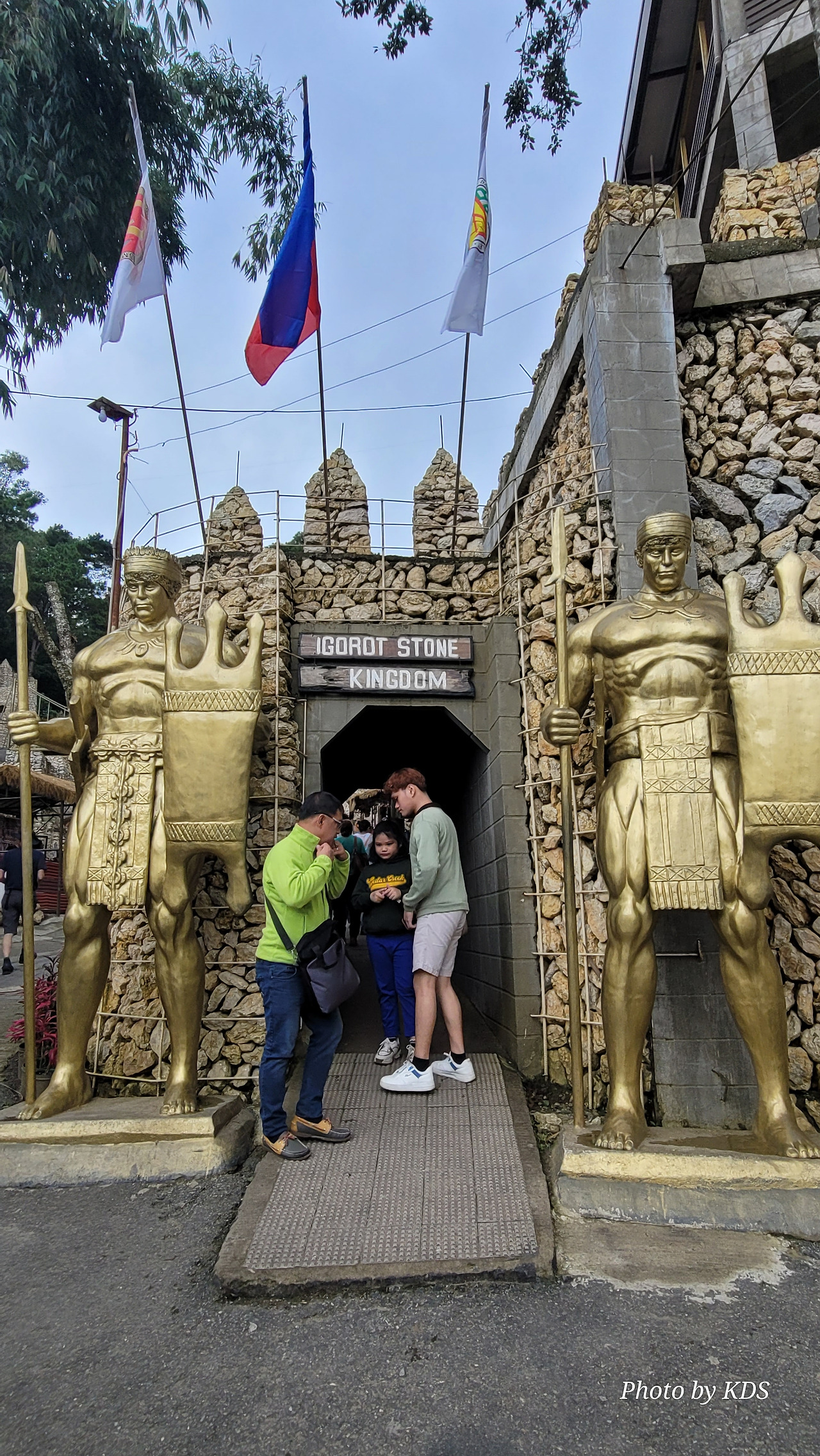 이고롯(Igorot) 돌 궁전(Stone Kingdom)은 탐아완(Tam Awan) 민속마을 근처의 가파른 산꼭대기에 위치해 있다. 이고롯족의 풍부한 문화유산을 보여주는 매혹적인 돌 건축물인데, 바나우에 계단식 논(Banaue Rice Terraces)과 비슷하게 가파른 비탈을 절개하여 그들의 독창성과 장인 정신을 독특하게 발휘한 것을 엿볼 수 있는 기회를 제공한다. 이곳은 마치 지리산 청학동 근처에 있는 삼성궁을 연상케 한다. 그런데 자세히 보면 확연히 다르다. 삼성궁은 그야말로 돌을 하나하나 쌓아서 만든 돌의 예술인데 비해, 이곳은 돌을 시멘트로 발라서 고정한 것으로 건축술의 차이를 보인다. 이 공원의 소유주인 피오 벨라스코(Pio Velasco)는 인내와 힘을 가르쳐 준 강한 이고로타 여성이라고 묘사한 어머니 리타 "로싱" 갈 벨라스코(Rita "Rosing" Gal Velasco)의 사랑스러운 기억에 경의를 표하기 위해 스톤 킹덤을 건설했다고 한다. 이 스톤 킹덤은 아직도 미완성인 상태이며 우리가 방문했을 때도 계속 공사를 진행하고 있었다. 한쪽 언덕 면은 보기 흉한 시멘트로 계속 공사를 진행하고 있어서 전체적인 조화가 부자연스러웠다.