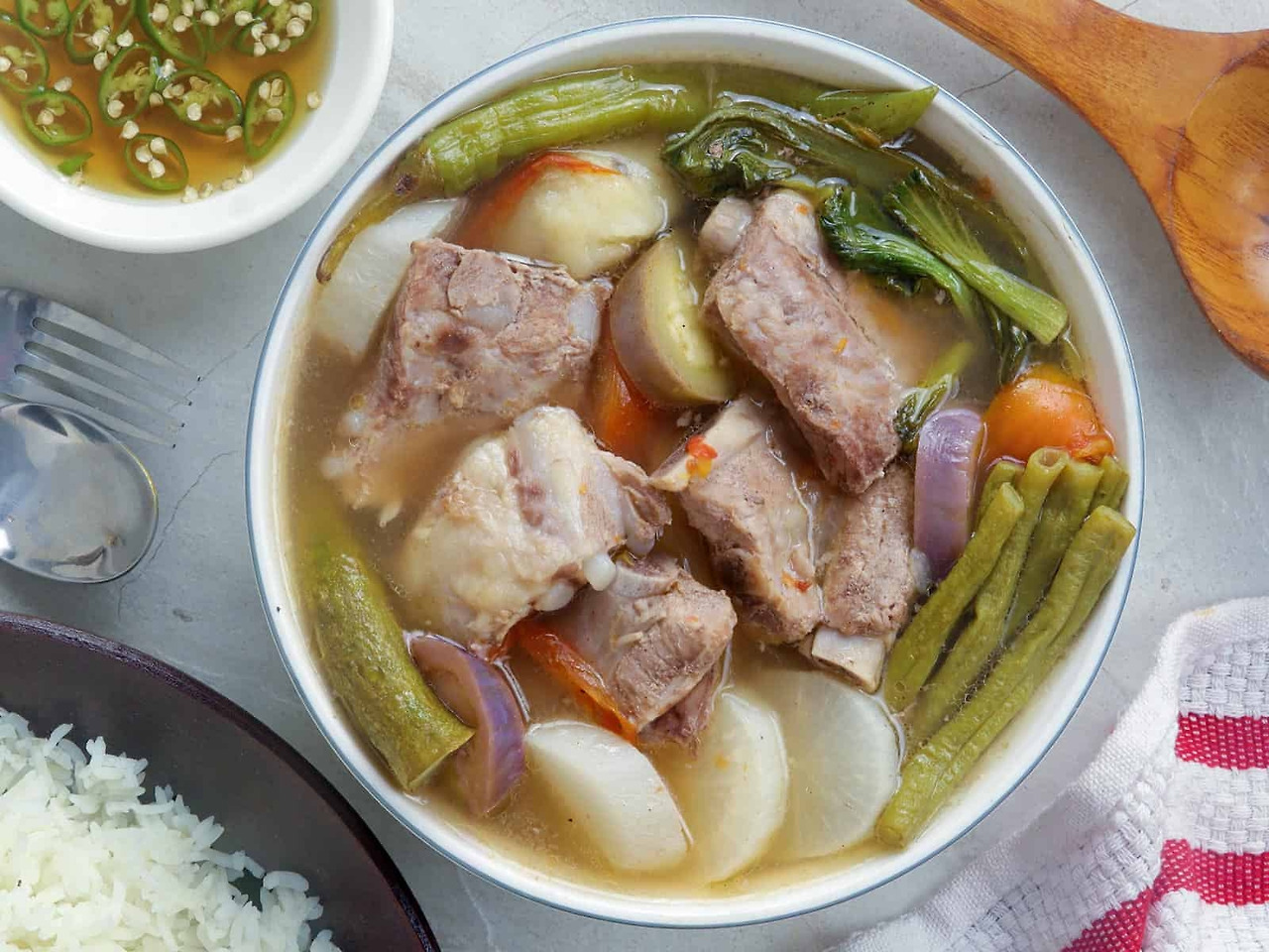 이번 바기오 체류 중에 가장 맛있고 즐겨 먹은 현지음식 중의 하나이다. 원래 어린 통돼지구이인 레촌(Lechon)을 자주 먹으려고 했는데, 상황이 잘 안 맞아서 조각낸 레천만 있어서 실망하고 레촌은 패스했다. 시니강(Sinigang)은 필리핀에서 가장 많이 맛볼 수 있는 음식 중의 하나다. 우리식으로 말하면 갱(羹) 즉 국이다. Sinigang은 “끓인 요리”를 의미하며, 타갈로그어 동사인 “Sigang(끓이다)”의 형태가 명사화된 것이다. 이 음식은 필리핀 전국적으로 존재하지만 원래 타갈로그 문화에서 유래한 것이다. 신맛과 짭짤한 맛이 특징이다. 파바콩 비슷한 타마린드(Tamarind) 콩을 약간 덜 익은 걸로 껍질채 1시간 정도 끓여서 콩에서 과육과 국물이 우러나오도록 거즈로 짜서 그 물을 기본 육수로 사용하는 요리이다. 육류재료의 종류에 따라 다양한 명칭을 부여하며, 국물의 신맛은 타마린드, 구아바, 빌림비, 푸른 망고, 파인애플 등을 사용한다.