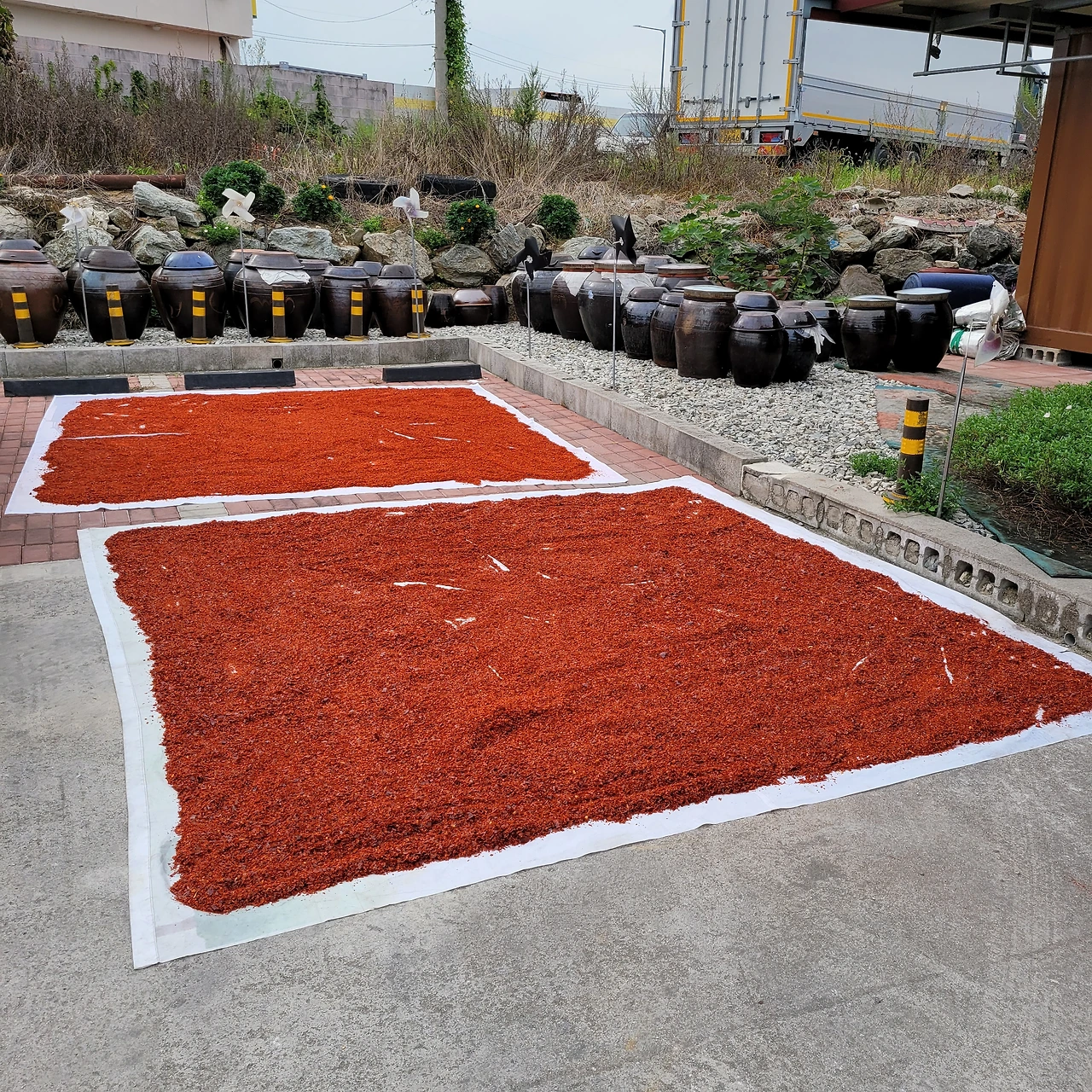 방앗간 뒷마당으로 가보니 빻은 고춧가루를 햇볕에 말리느라 하얀 비닐에 널어놓은 고추 가루도 보인다.