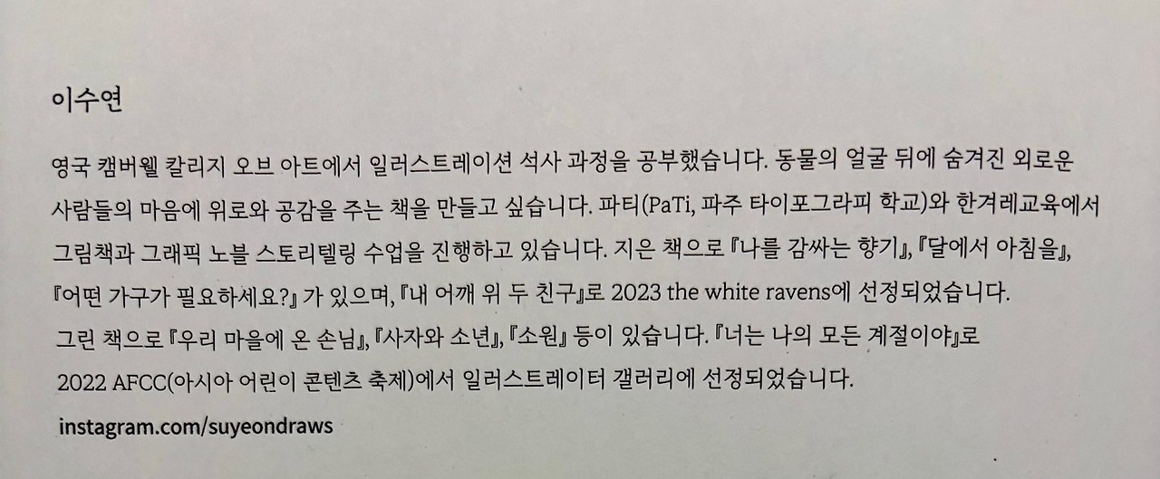 이수연 작가의 작품 이력을 살펴보니, 유난히 집과 책에 관한 주제로 쓰인 작품들이 많습니다. 실제로 『어쩌다 보니 가구를 팝니다』는 실내 건축 디자인을 전공한 작가가 3년간 가구 파는 일을 하며 겪은 자전적 경험으로 쓰인 내용입니다. 작품에 가구 영업 사원의 일상적 고단함과 시간이 지날수록 변해가는 직장인의 모습이 리얼하게 표현되어 있어 인상적이었는데, 역시나 작가 자신의 모습이 투영 됐다는 것을 알게 되니 더욱 주인공인 곰 사원이 언젠가 만난 적 있는 20대의 가구 영업 사원처럼 느껴졌습니다.
