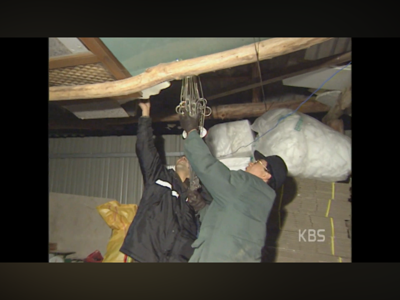 거실 천장엔 스프링 올무가 빼곡히 걸려 있었고,