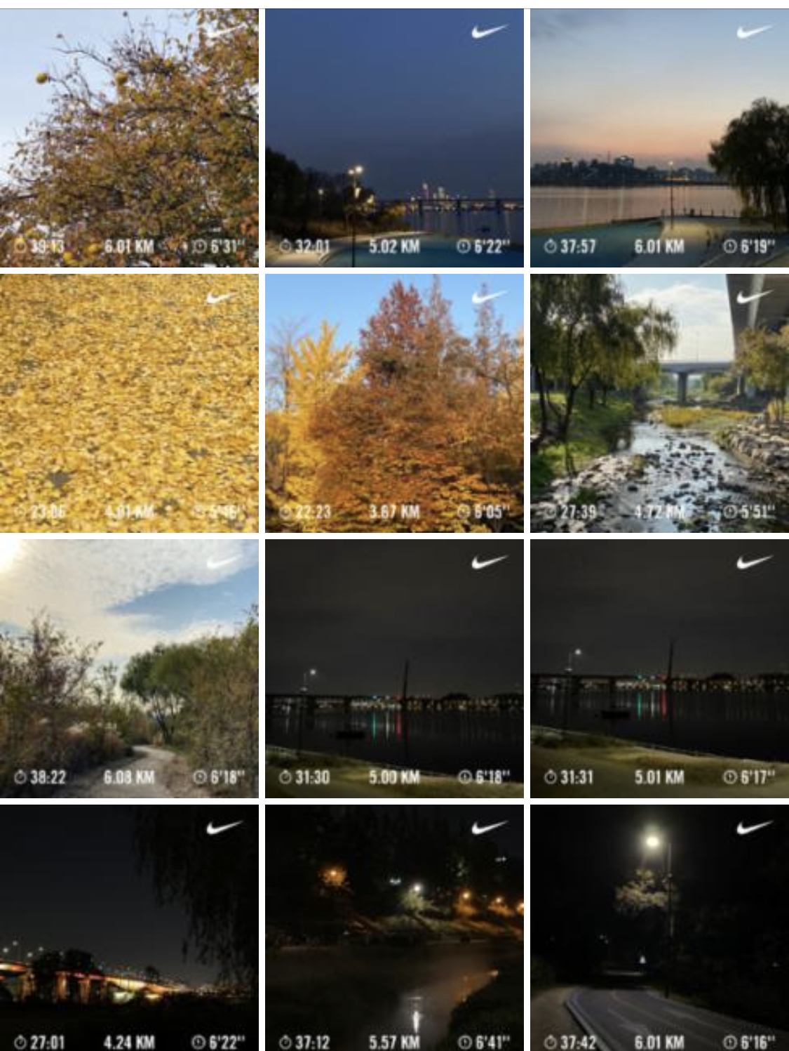 그리고 마침내 조금은 한숨 돌릴 수 있는 기점이 찾아왔습니다. 노트북 전원을 끄고 책을 덮었습니다. 아직 오후의 햇빛이 남아있는 한강으로 나갔지요. 9월부터 이틀에 한번 뛰던 러닝은 11월 들어 횟수가 확 줄었거든요. 바빴다는 핑계가 얼마나 설득력 있게 들릴 지 모르겠지만. 전반적으로 지쳐있기도 했고 훌쩍 추워지기도 해서 움츠려 있었던 것 같아요. 오랜만에 달리니 참 좋았습니다. 그동안 무리를 해서라도 뛸 걸, 하는 후회도 들더라고요. 두껍게 껴입은 러닝복 때문에 이전보다 무거운 몸으로 숨은 턱 끝까지 차올랐지만, 동시에 몸의 활력도 살아났습니다. 평소보다 조금 더 길게, 오래 뛰고 돌아와 따뜻한 샤워를 했어요. 채 마르지 않은 머리로 따뜻한 차를 마셨구요. 밤의 어둠으로 빨려들어가는 마지막 빛들이 차 위에 어른거렸습니다.