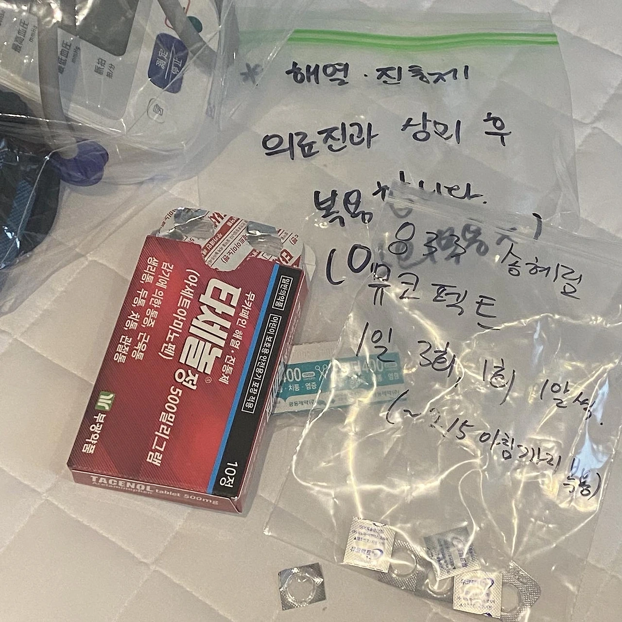 막상 판정 결과를 통보받고 갖가지 행정 안내를 받을 때는 덤덤했다. 이미 몸이 내게 일러줬기 때문이다. 오래 운동을 해온 덕분에 나는 체력도 나쁘지 않고 잔병치레도 거의 없다. 여자에게는 흔하다는 만성두통이나 생리통에 시달려본 지도 오래고, 자가치유를 믿는 편이라 아파도 약은 가급적 복용을 꺼린다. 백신을 맞고서도 타이레놀 한 알 먹지 않았던 나다. 그런 내가 재택치료 대신 생활치료센터 입소를 요청했다는 건 정말 끔찍하게 아팠기 때문이었다. 오전 중에 이송차량이 도착할거라 알려주는 담당자에게 나는 갈라진 목소리로 간청했다. 두통이 너무 심해 움직이질 못하고 있으니 진통제만이라도 먼저 보내주면 안되느냐고. 절박한 내게 돌아오는 답변이란 불가능하니 조금만 더 버텨보라는 말 뿐이었다. 그런 나를 살린건 이모였다. 나와 밀접접촉자이기도 한 이모는 검사를 받으러 보건소에 가는 길에 진통제 한 통을 숙소 문 앞에 놔두고 가셨다. 그 두 알을 삼키고 나서야 나는 몸을 일으킬 수 있었다. 입소를 위해 다시 짐을 싸야했다. 음식은 반입할 수 없고 퇴소할 때 소지품의 대부분은 폐기해야 한다고 했기 때문에 챙길 수 있는 건 많지 않았다.