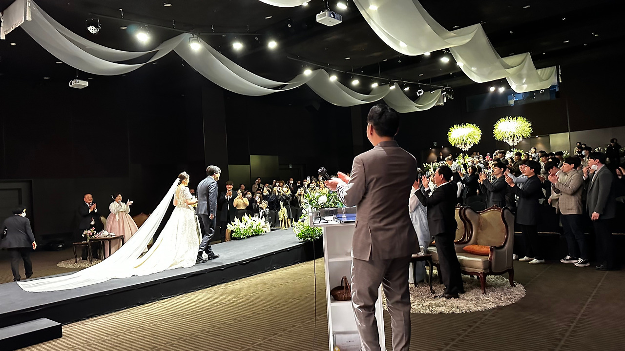 그래서 제가 가족이 된 듯한 마음으로 정말 열심히 준비했어요. 멘트 한 글자 한 글자, 호흡 하나하나마다 진심으로 행복을 빌어드리는 마음으로요. 현장에서는 단 한순간도 놓치지 않기 위해 너무 집중한 나머지 등에 땀이 다 찰 정도였죠. 머리부터 발끝까지 사소한 움직임조차도 온 집중을 다했거든요. 그리고 다행히 성황리에 결혼식을 마칠 수 있었고, 신부님께서도 정말 감사하다며 나중에 제게 직접 연락을 주셨어요.