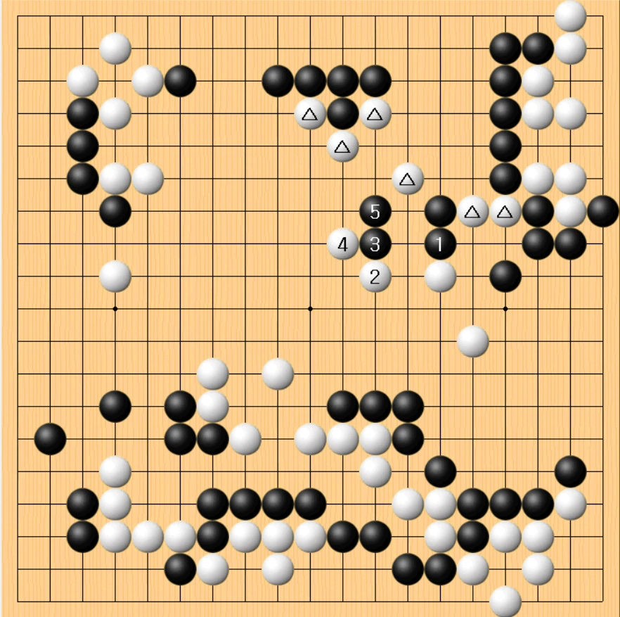 우변 흑 모양이 모두 집으로 굳어지면 기회는 없다. 신민준은 흑의 작은 틈이라도 찾기 위해 우변을 노려본다.