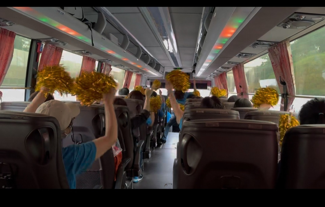 버스에 다시 타자마자 나는 아까 받았던 김밥을 입에 욱여넣었다. 더 늦게 먹었다가는 (당시 8시 반) 점심을 먹지 못할 것 같다는 느낌이 들었기 때문이다. 김밥의 2/3쯤 먹었을 때, '난타' 팀 단장님께서 저녁에 할 '난타'공연 연습을 하자고 하셨다. 공연장 가서는 리허설을 제대로 해볼 시간이 없기에 여기서 미리 연습하는 것이라고 설명했다. 남은 김밥을 급하게 입에 털어 넣고 연습을 시작했다.