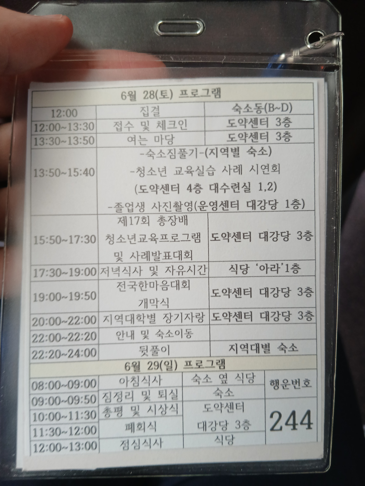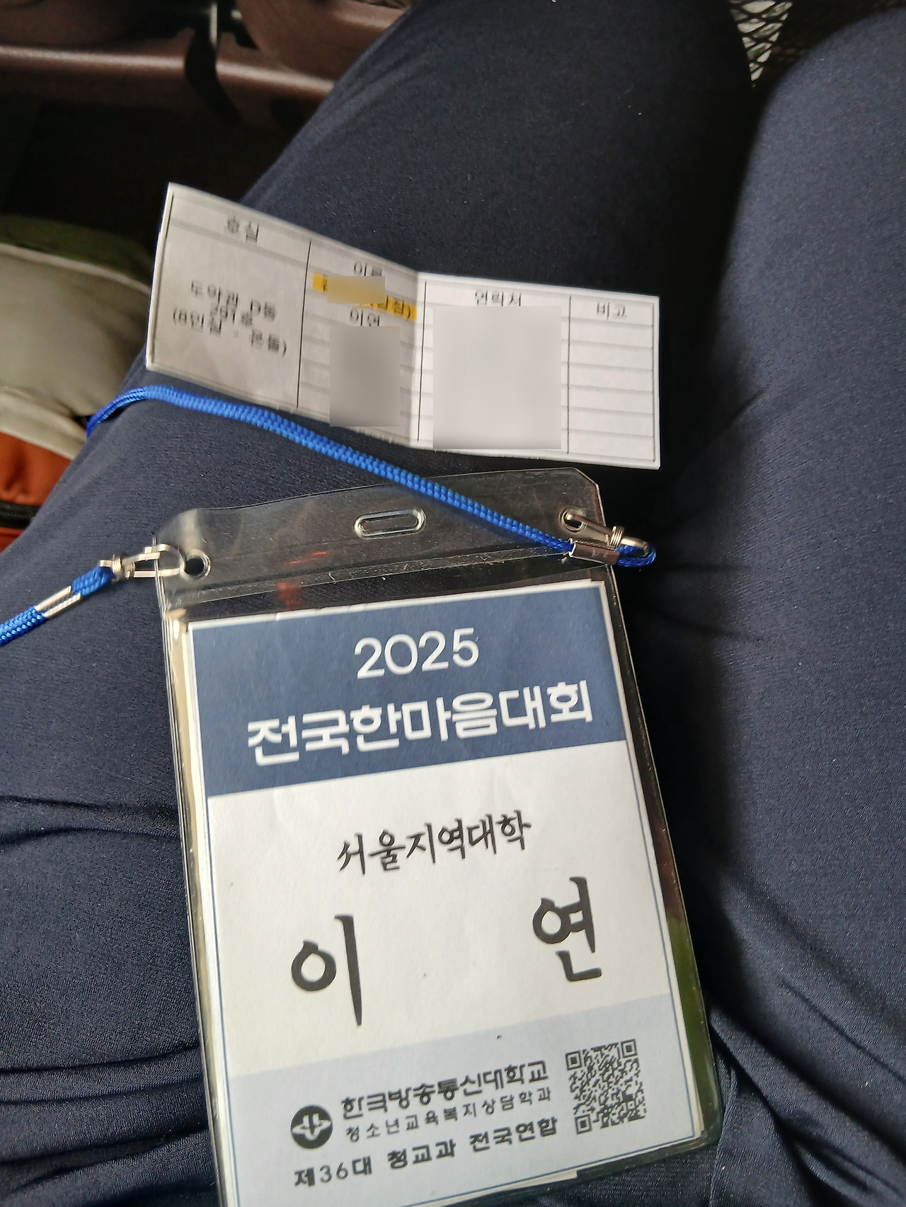 다음 휴게소에 도착하기 전, 내 명찰과 같은 방을 쓸 사람들 명단을 받았다. 인원수를 보니, 아무래도 참여한 남자 전원이 한 방이 된 것 같다. 다행히 이 방에 있는 대부분의 사람들과 안면이 있기에 내 입장에서는 편하다.