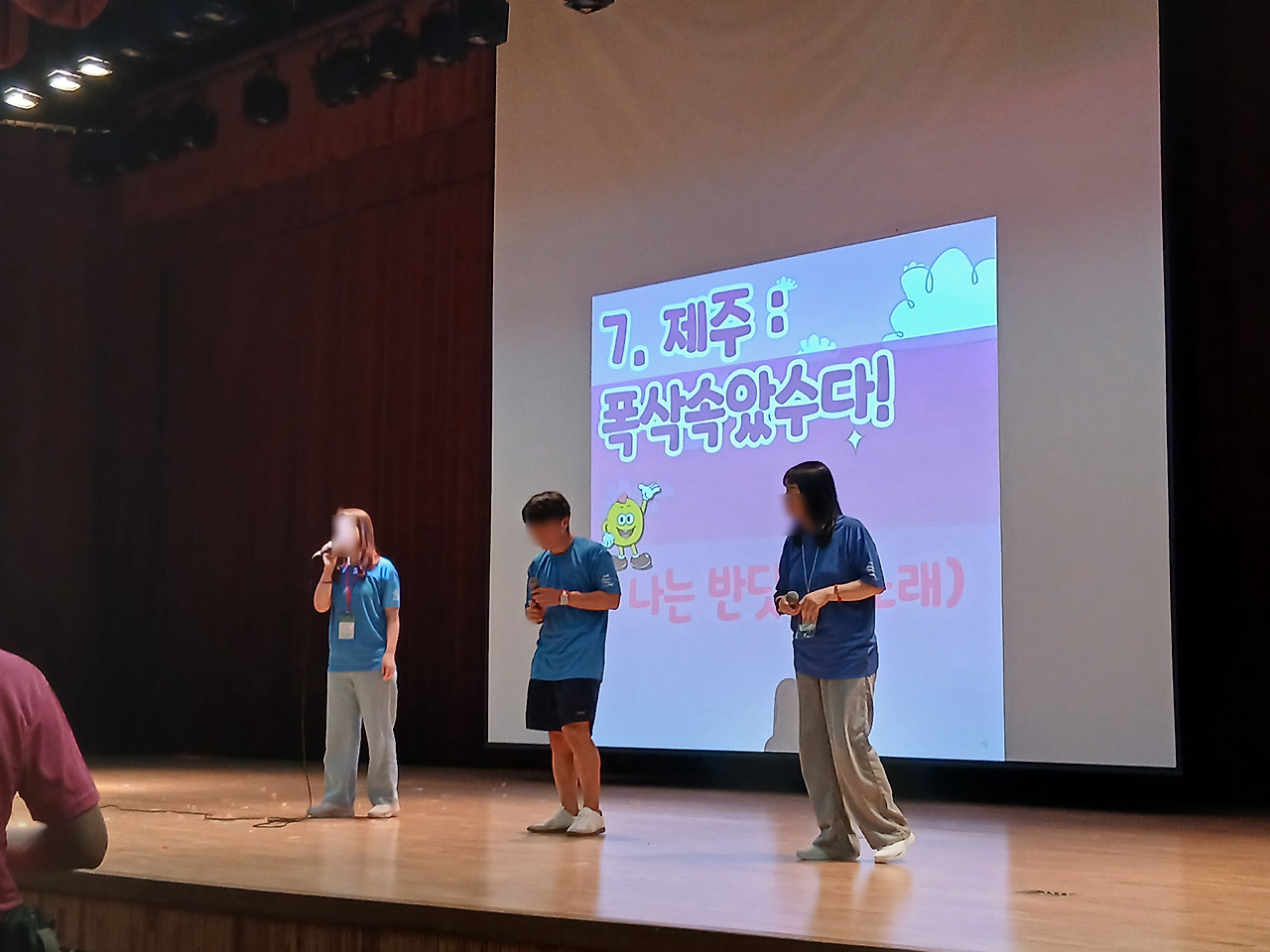 제주 팀은 한마음대회에 참가하려면 비행기를 타고 와야 한다. 많은 인원이 모이기 어렵고, 그중에 장기자랑까지 참여할 사람을 찾고 연습까지 하기는 정말 어렵다. 최소 인원이 필요한 춤 대신 노래를 택한 이유는 여기에 있었을 것이다.