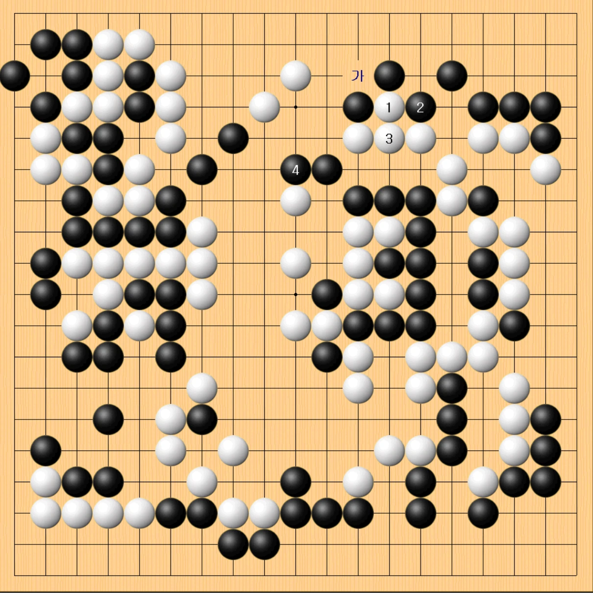 백이 1,3으로 상변과의 연결을 차단하자 흑은 4로 연결했다. 백의 다음 수는 당연히 '가'의 자리일 텐데, 양카이원의 손이 멈춘다. 무슨 수가 있는 것일까.