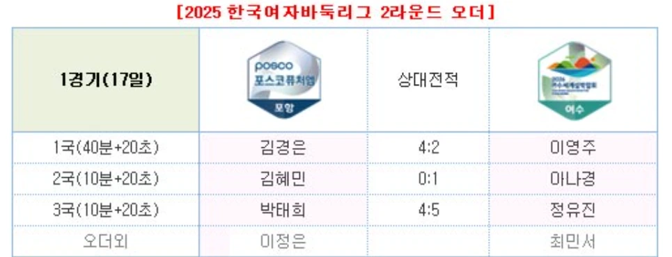 2025 여자바둑리그 - 2라운드 승부예측