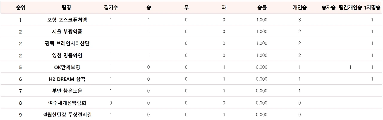 여수 팀은 <팀 전력 분석> 편에서 9개 팀 중 최하점(2점, 최하)을 받았던 팀이다. 아무래도 유리한 대진을 기대하기는 어렵다. 그래도 이번 라운드에 기대를 걸어볼 부분은 포항 팀에 압도적인 선수가 없다는 점. 3판 모두 객관적 전력을 비교해봤을 때 유리한 승부는 아니지만, 충분히 이겨볼 만 한 승부라고 생각한다.