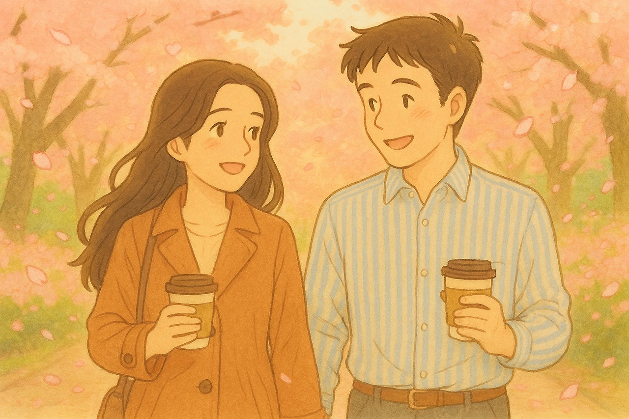 커피를 들고 회사 앞 벚꽃길을 걸으며 예뻤는지,