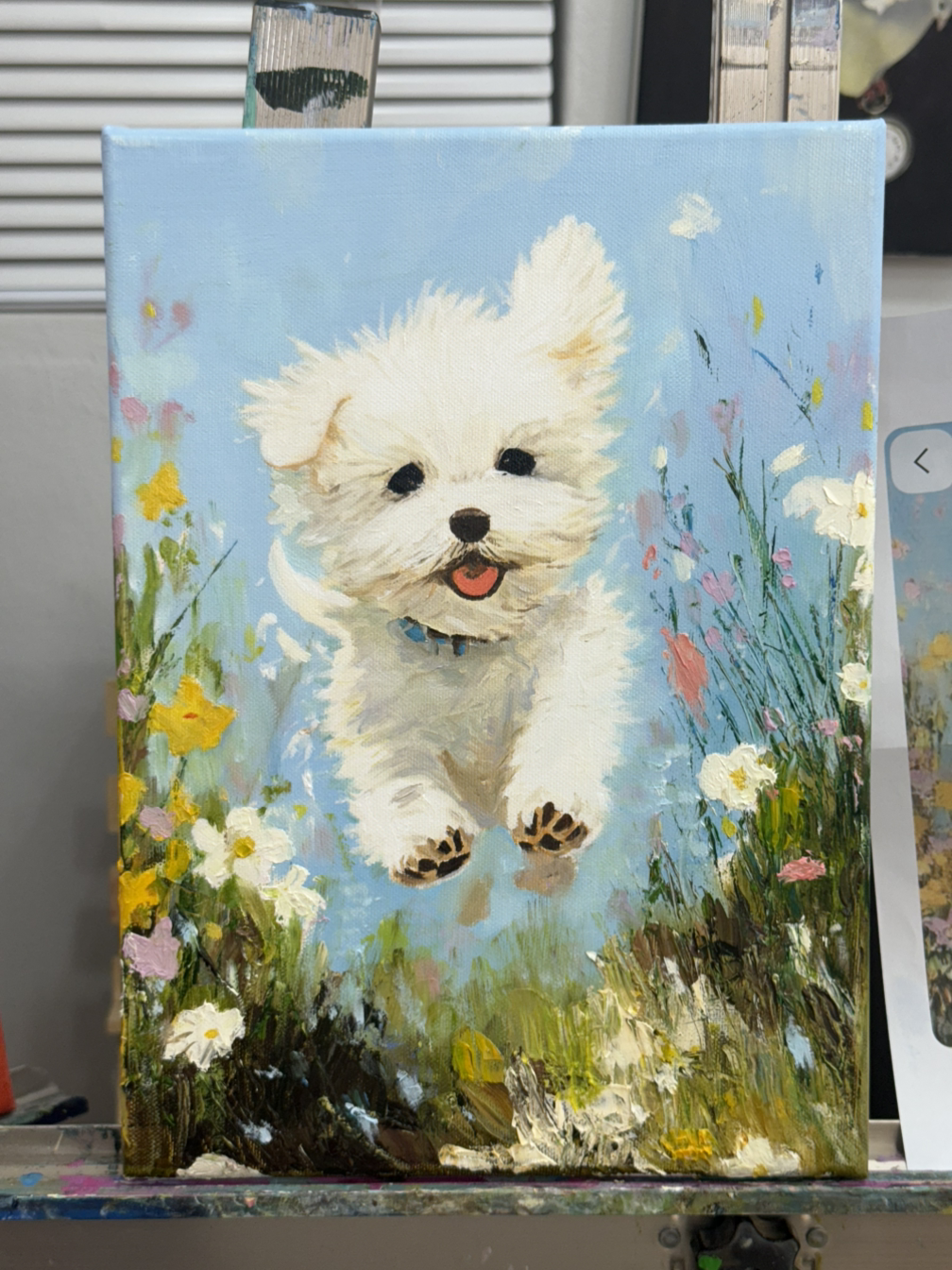 나도 강아지의 털만 신경 쓰고 계속해서 그리고 있다가, 힘들어서 앉아서 보니까 하얗던 강아지가 어느샌가
