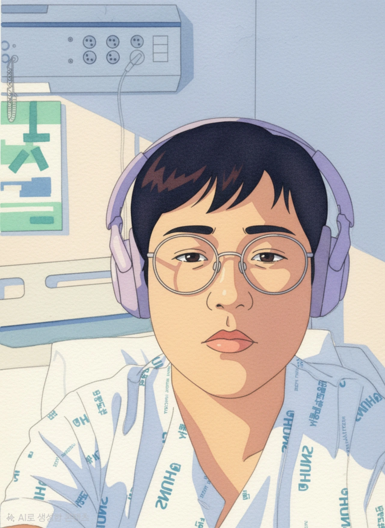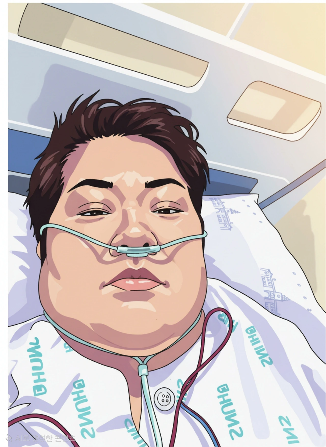산소포화도 때문에 코에 산소 줄 달고 있다.