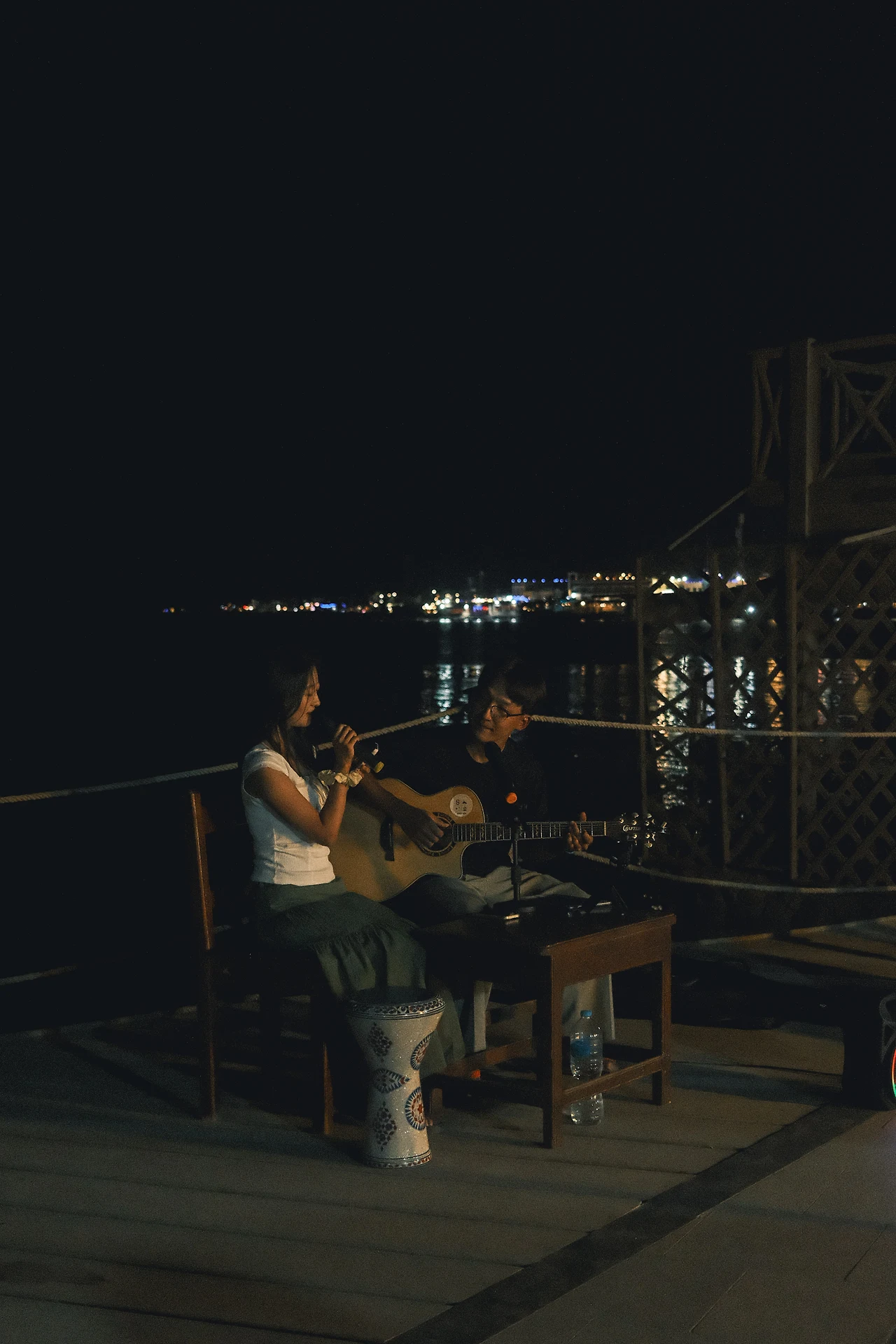 그 말에 이집션들은 좋다며 엄지 척을 하거나 “오케이! 오케이!”를 연발하며 어깨를 들썩였다. 역시나 흥이 우리보다 열 배는 많고, 노래를 진심으로 사랑하는 사람들다웠다. 점점 무대가 세팅되어 갈수록 사람들은 하나둘 늘어났다. 이미 이곳에 여행 온 한국인들 사이에서도 소문이 퍼졌는지, 길을 걷다 마주친 낯익은 얼굴들도 꽤 많이 앉아 있었다. 관객들이 늘어나는 모습을 보고 심장이 더 빨리 뛰기 시작했다. ’ 이건 진짜 미친 짓이야.’ 아무리 마음을 다잡으려 해도 그 생각이 머릿속에서 지워지지 않았다. 설렘과 공포감이 뒤섞여 가슴 한가운데서 부딪히고 있었다.