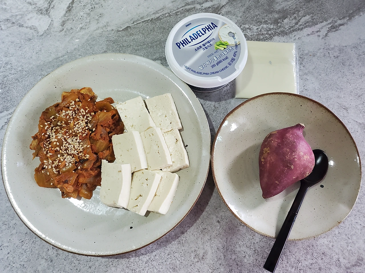 안 먹어 보면 몰라유. 필라델피아 크림치즈, 슬라이스 치즈 다 찰떡!