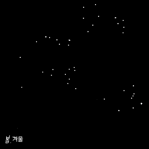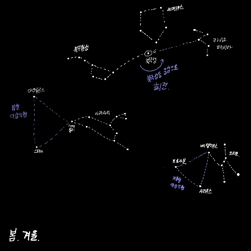 북극성을 중심으로 봄, 여름, 가을, 겨울의 별자리들이 하루에 한 바퀴씩 돈다.