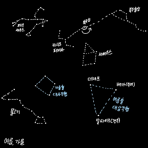 그중 그 계절마다 가장 잘 보이는 별자리가 계절별 별자리가 된다.