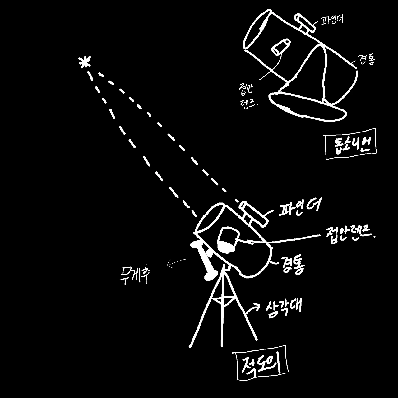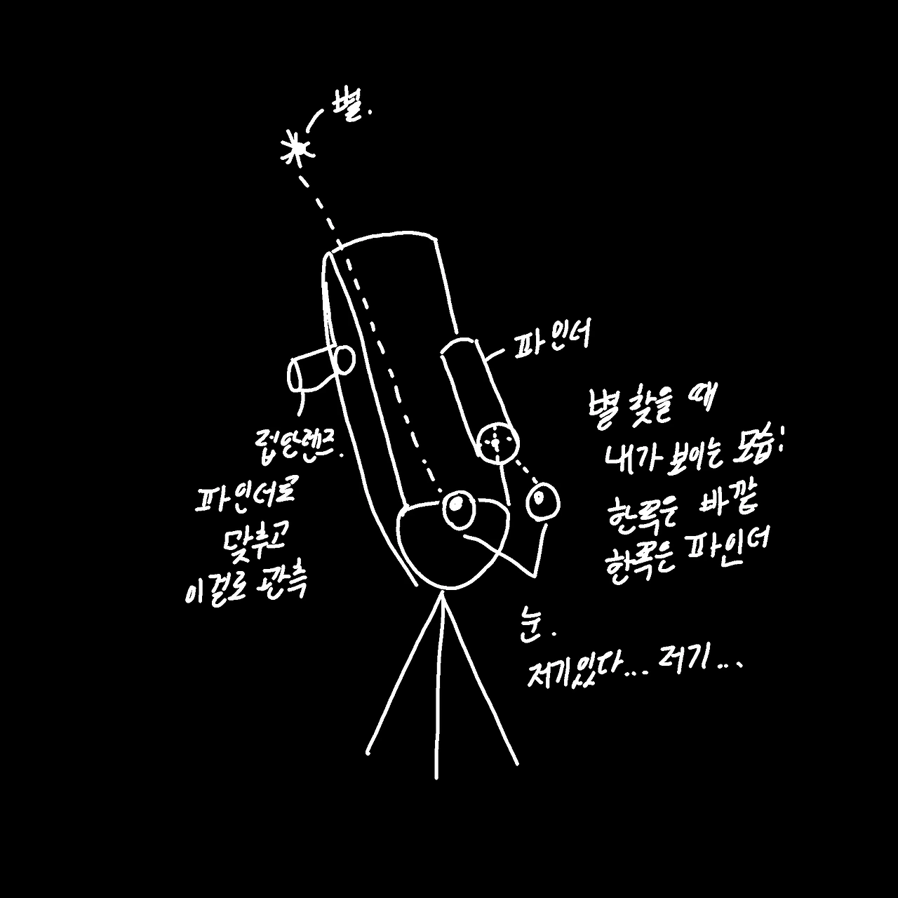 그냥 보면 될 것 같지만 개인적으로 나는 파인더 정렬보다 실제 망원경으로 별을 찾는 게 더 어려웠다!