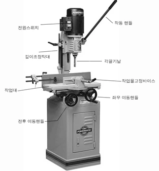 - 작동핸들 : 드릴을 아래로 내려 구멍을 냄.