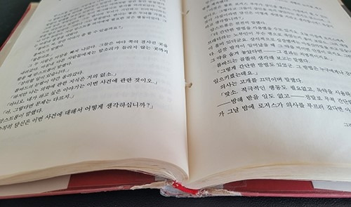 예전엔 책이 집에 있었는데 어디로 간 건지 찾을 수 없었다. 도서관에서 책을 빌렸는데 오래된 건지 아니면 너무 많은 사람들이 빌렸던 건지 책 표지는 테이프에 감겨있었고, 책장은 끈으로 고정되어 있었다. 테이프, 끈... 스릴러물답다.