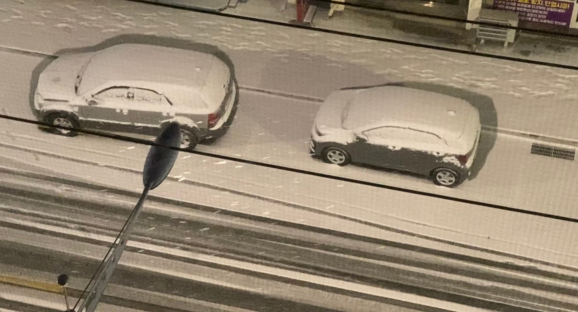 여러 생각이 든다. 지난 기억들이 떠오른다. 이 거리에도 이런 허름한 동네에도 겨울은 이쁘구나. 눈이 오면 모든 걸 덮듯, 그저 하얀 것들만 보여서 그런가. 아름답다. 지나가는 차들, 몇몇 사람들. 인사하고픈 심정이지만, 노래를 흥얼거리는데 족하다. 핫초코는 어느새 차가워지고, 한 모금 마셔보니 언제 따뜻했냐는 듯. 창틀에 팔을 기대고 또 한참. 노래 끝자락에 ‘눈’을 반복하는 노랫소리를 따라 한다. 행복하다. 의미 부여할 필요는 없다. 그러지 않으려 한다. 그저 행복할 뿐이다. 이 순간을 남기려 휴대폰을 만지작거린다.