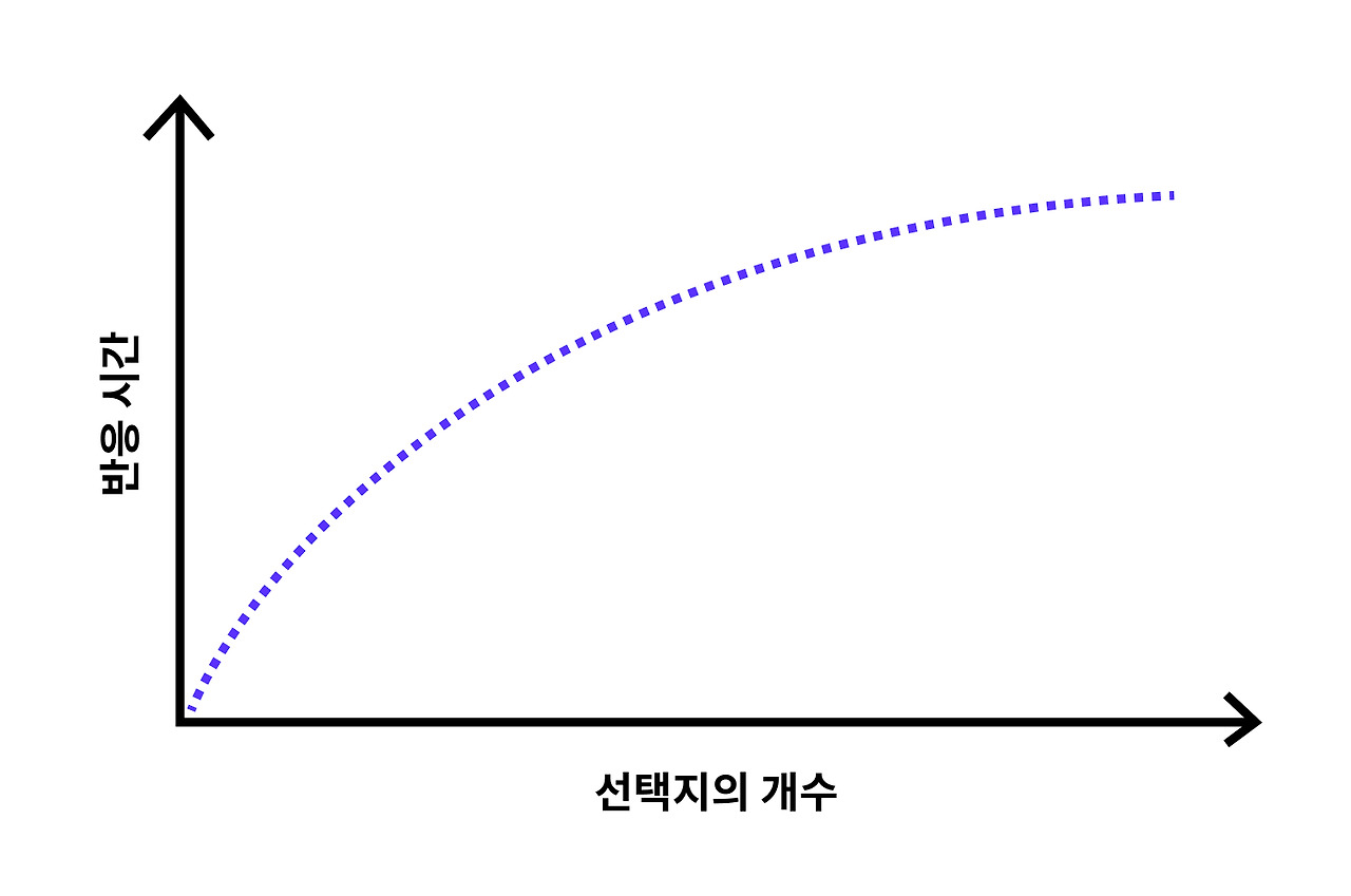 • 의사결정 시간이 반응 시간에 큰 영향을 받을 때는 선택지의 개수를 최소화하라.