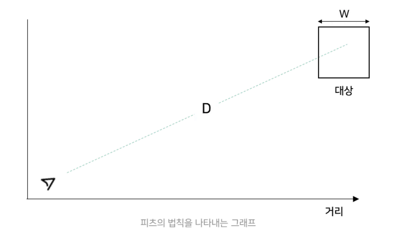이 법칙은 1954년 미국의 심리학자 폴 피츠(Pau Fitts)가 터치대상까지 움직이는데 드는 시간을 대상까지의 거리와 대상 너비 간의 비율에 관한 함수를 통해 예측하면서 탄생했다. 인체 움직임에 관한 가장 영향력 있는 수학적모델로 여겨진다. 이 법칙에 의하면 대상선택을 위해 움직이는 거리가 줄면 대상을 선택하는데 드는 시간도 줄어든다. 그 반대로, 대상이 작아지고 멀어질수록 대상선택에 드는 시간은 늘어나는 것이다.