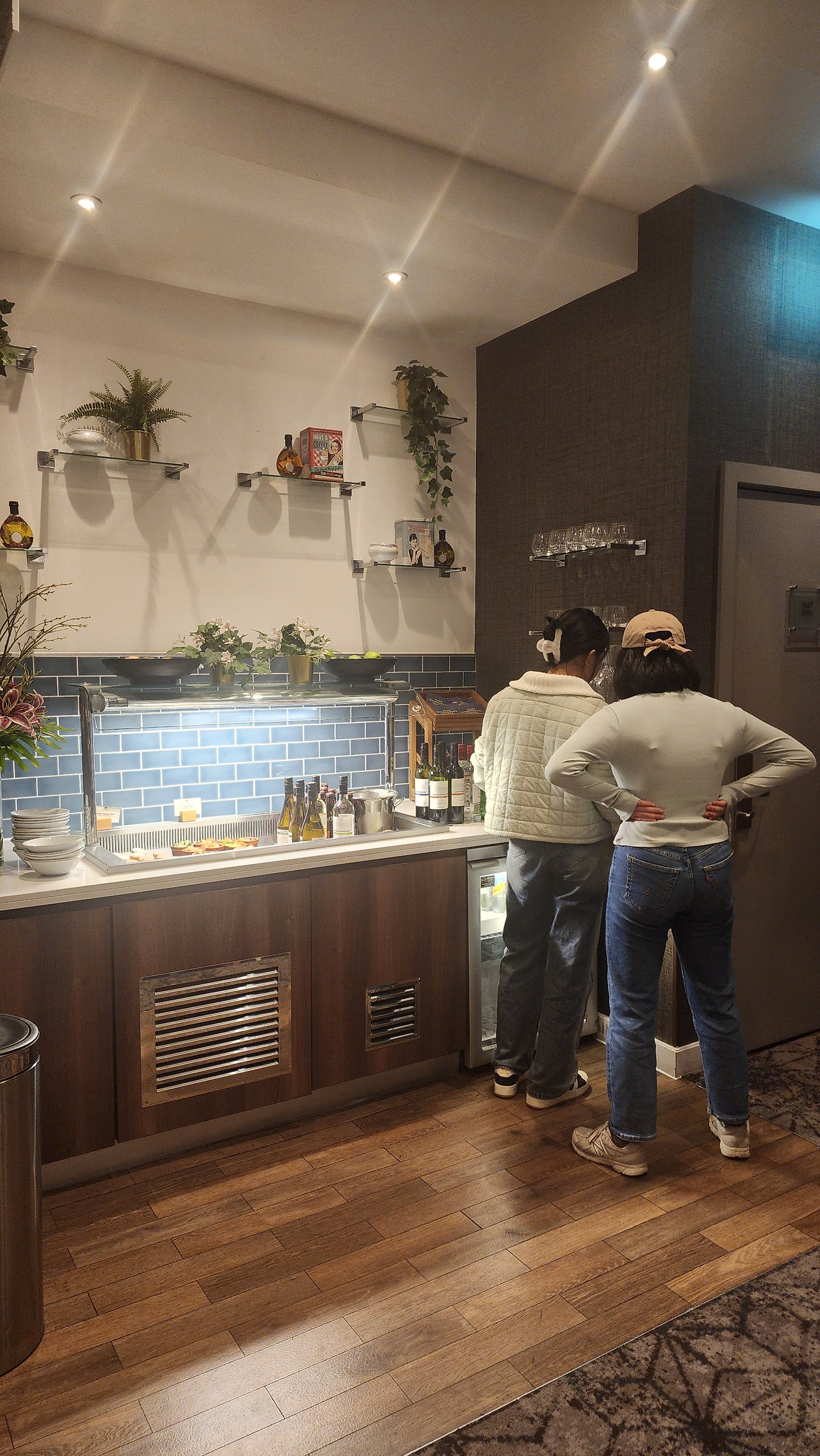 혼자이다 보니 테이블을 비우고 주문하러 갈 형편이 못돼서 그냥 앉아있는데 둘째가 왔다. 배가 고프다길래 알아서 주문하라고 보냈더니 라자냐를 가져왔다. 결국 긴 기다림 끝에 나는 의자를, 둘째는 라자냐를 얻은 셈. 한참 둘러본 큰딸이 왔길래 얼른 숙소에 가자고 일어서는데 아까 지나친 중고서점에 가고 싶단다. 다들 안 가면 혼자 다녀오겠다더니 정말 혼자서 서점을 들렀다가 숙소로 왔다. 심지어 곧장 온 우리보다 먼저 도착해서 라운지 음식사진 보내옴-- 이젠 엄마보다 훨씬 길도 잘 찾고 잘 다니는 현지인 느낌의 딸이 낯설지만 대견하기도 하고 내 역할이 점차 사라지고 있음에 아주 조금은 서운하기도 하고...