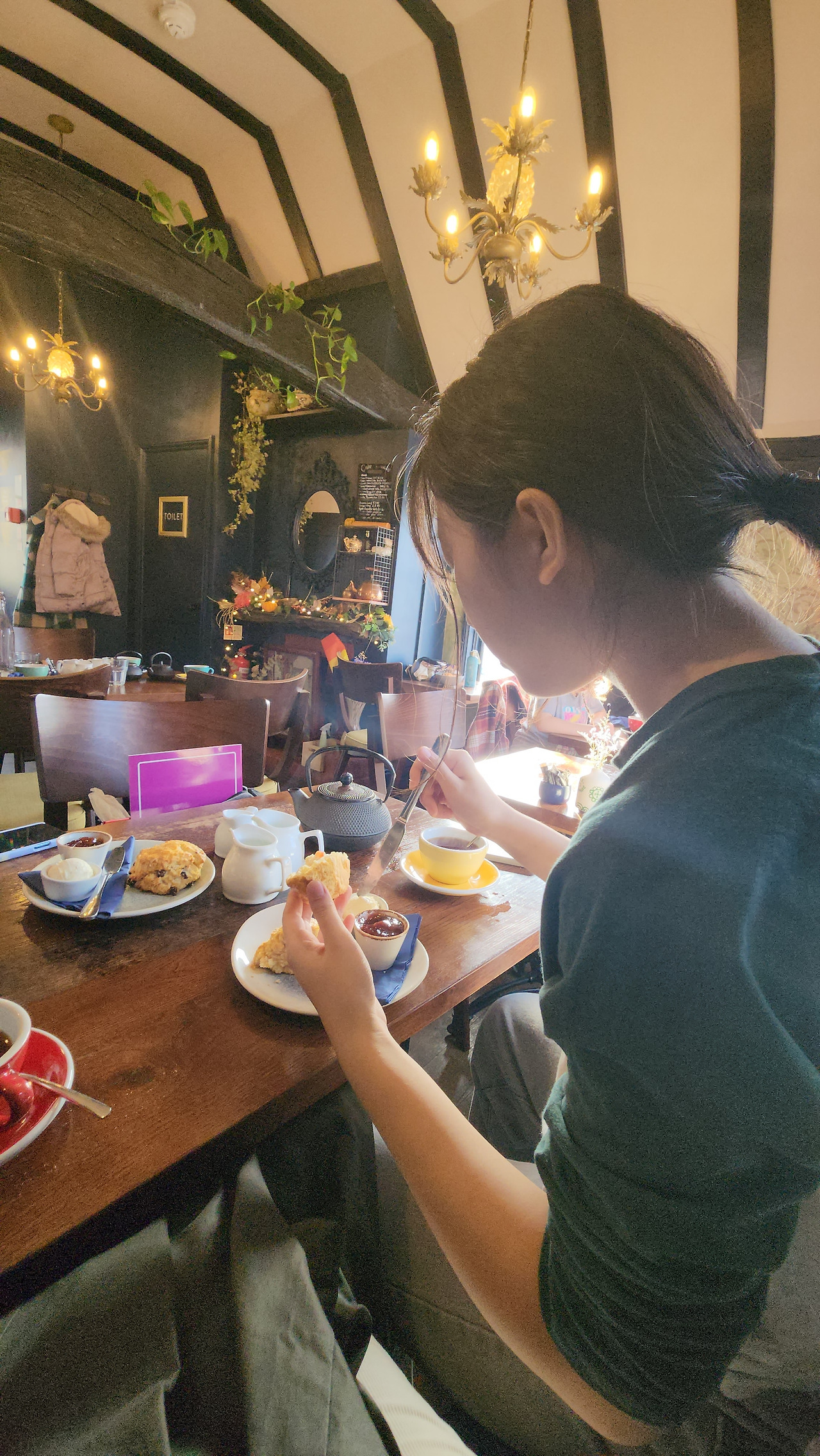 영국여행 일주일 만에 드디어 만난 하이티세트!!! 건물이 좁고 높아서 직원들이 3층 테이블까지 무거운 주전자와 접시를 쟁반에 담아 가파른 계단으로 오르내리는데 주문받을 때도 숨이 차서 거칠게 호흡을 하는 것을 보면서 참 힘들겠다... 싶었다. York Tea 두 잔에 건포도 스콘과 초코 스콘 그리고 페퍼민트 티를 주문해서 맛있게 먹고 잠시 쉬었다가 다시 구경을 나섰다.
