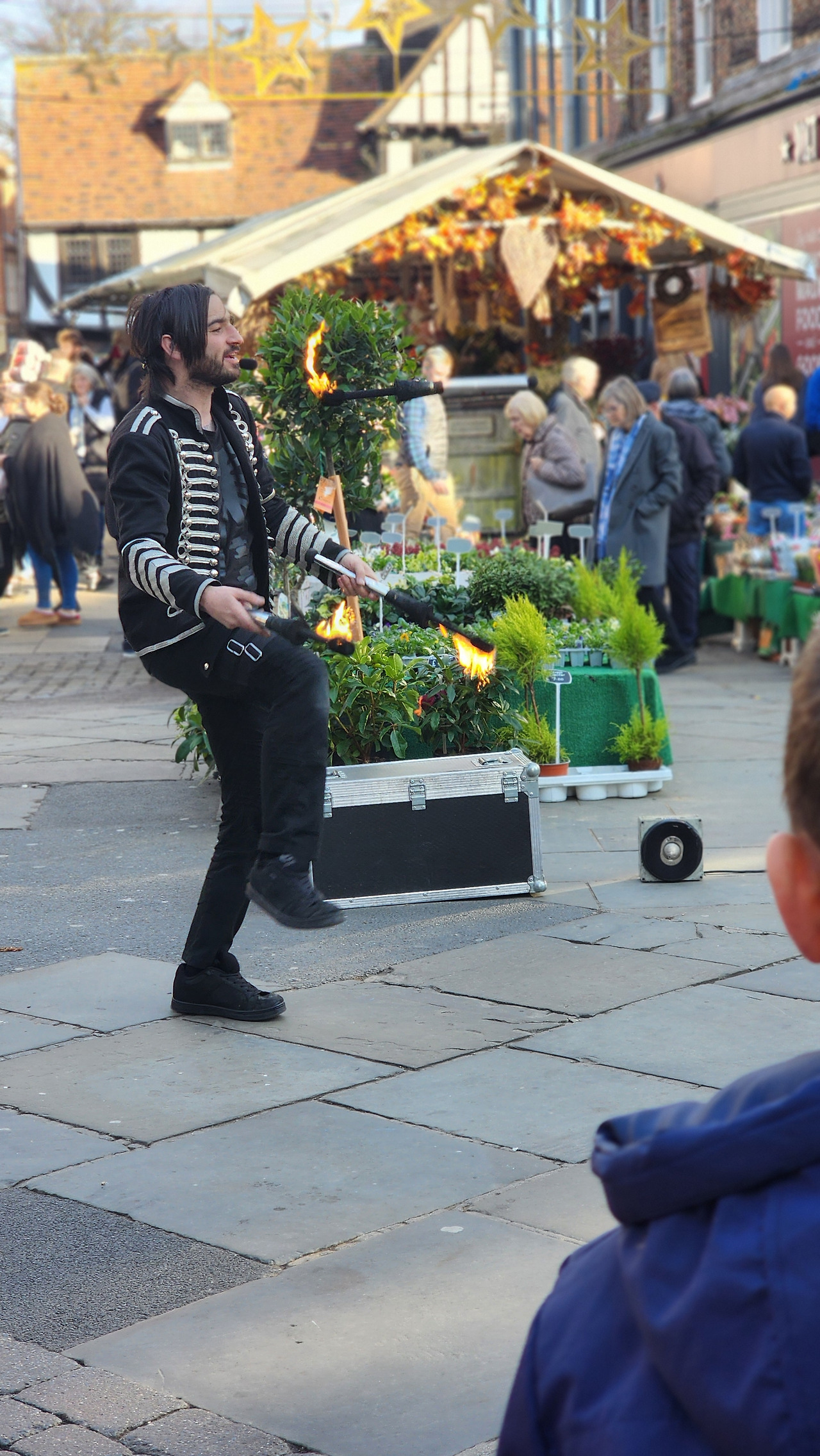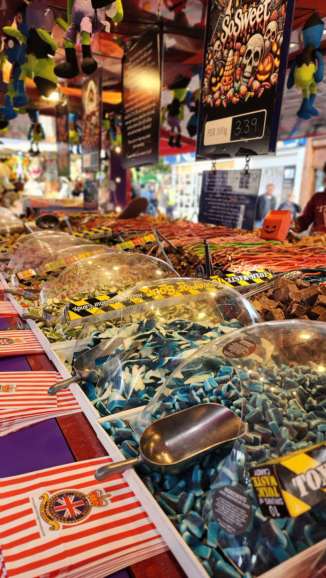 해리포터 1편 지팡이 팔던 가게 분위기가 여전히 물씬 풍기는 아기자기한 골목 곳곳에 상점들을 하나씩 구경하다 보면 달콤한 캐러멜과 초콜릿 향에 이끌려 가게를 들어가게 되고 창문 너머로 보이는 케이크와 쿠키의 비주얼에 몇 번이나 드르렁하다가 정신줄을 단단히 잡아야 계속 걸음을 이어갈 수 있다. 싱싱한 야채와 과일을 파는 시장을 지나면 관람차와 놀이기구가 있는 광장에서 어마어마한 규모의 젤리가 쌓여있고 그 앞에선 사람들이 동그랗게 모여 묘기를 관람 중이다. 내 옆에서 한 발짝 앞에 서서 진지하게 바라보던 남학생이 당근 던지는 역할로 당첨되어 칼쇼를 위해 중앙으로 이동했고 사람들의 뜨거운 박수를 받고 제자리로 돌아왔다. 군인 출신이라는 한 건장한 남성과 불이 붙은 막대를 주고받는 불쇼가 이어졌다. 야외 푸드코트에서는 트럭에서 아주 통통한 핫도그 소시지가 먹음직스럽게 구워지고 있었고 정체모를 뜨끈한 스프 느낌의 디저트가 호기심을 자극했는데 더이상의 단맛 릴레이는 무리라 아쉽게도 도전을 포기했다.