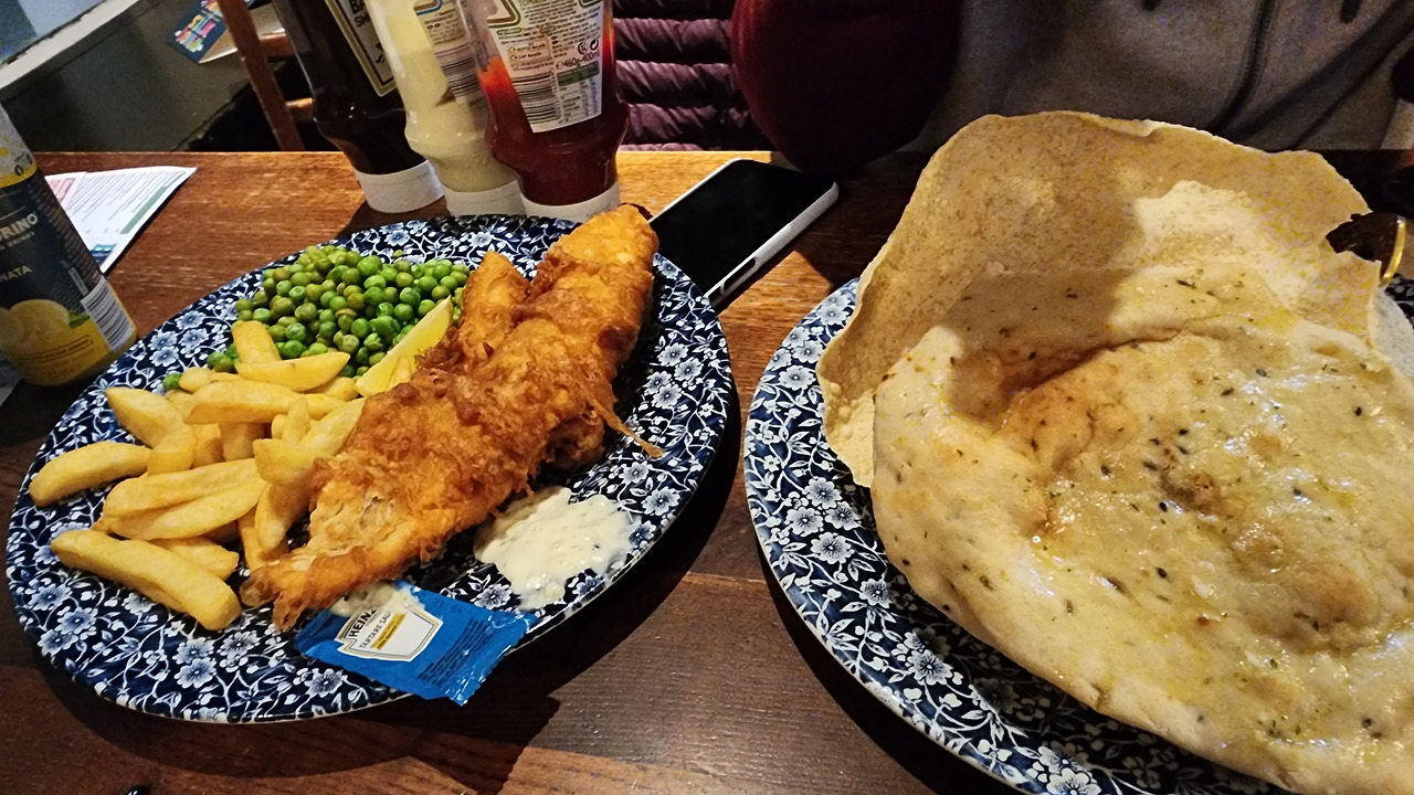 피시 앤 칩스에 카레&난을 주문하고 로컬 생맥주!