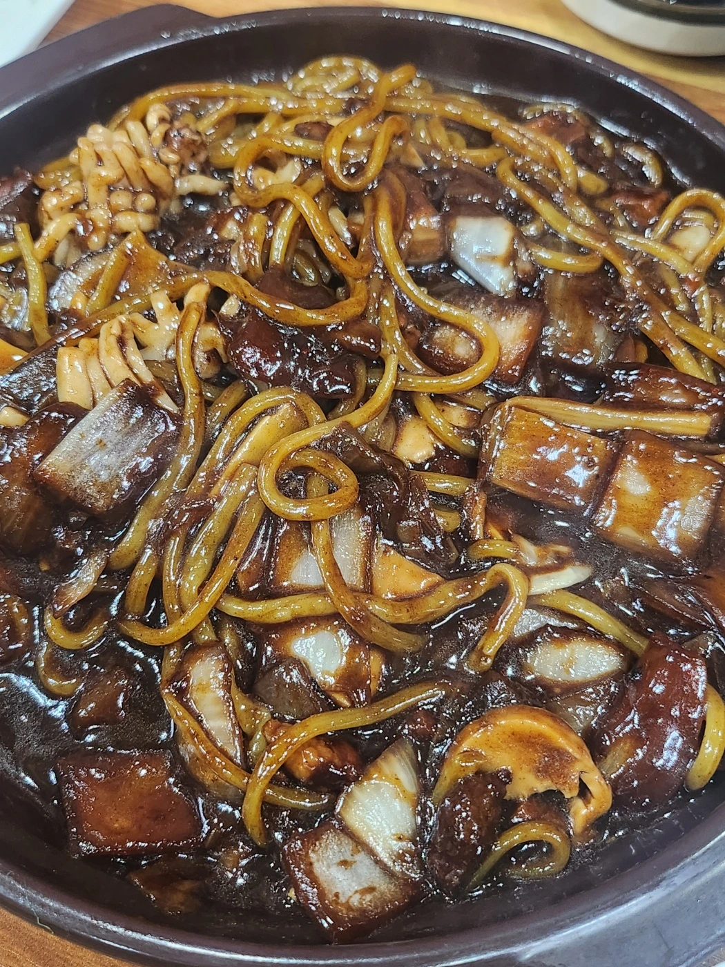 언제 나오려나, 생각하자마자 김이 폴폴 나는 짜장면이 테이블에 놓였습니다. 짜장소스와 면이 어우러지도록 젓가락을 들어 슬슬 비비는데 기분이 좋았습니다. 배달로 시켜 먹는 짜장면은 아무리 빨리 온다 한들 면이 조금 굳어버릴 수밖에 없고 짜장소스는 조금 식어버릴 수밖에 없어서 젓가락을 양손에 야무지게 쥐고 열심히 섞어야 했지만, 테이블에 바로 놓인 짜장면은 젓가락을 한 손으로 잡고 슬슬 비비는 것만으로도 충분했거든요. 그만큼 부들부들한 면과 뜨끈한 짜장소스가 입맛을 다시게 만들었습니다.